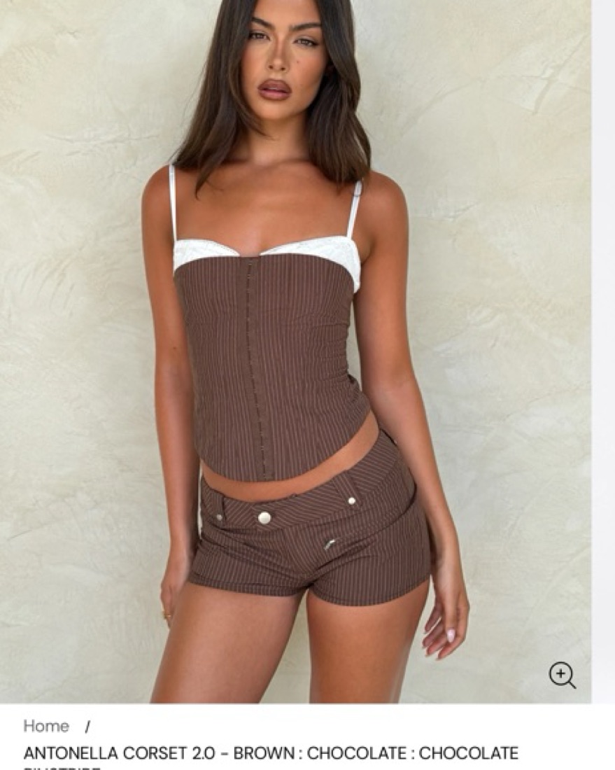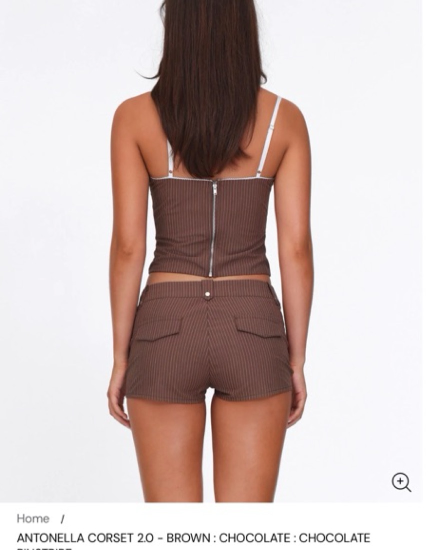 Tiger Mist ANTONELLA CORSET 2.0 and matching short in chocolate brown and pink stripe. Both pieces size small. Like new condition