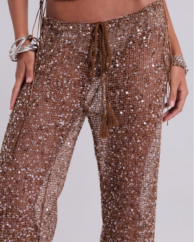 Brown sequin matching pants by Jaded London. I also have the matching corset to wear as a set. Please see listing for matching set on my page.