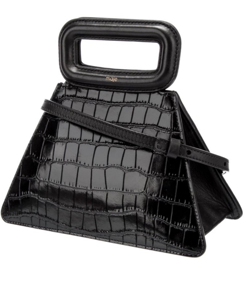 MAJE BLACK CROC EMBOSSED HANDLE BAG