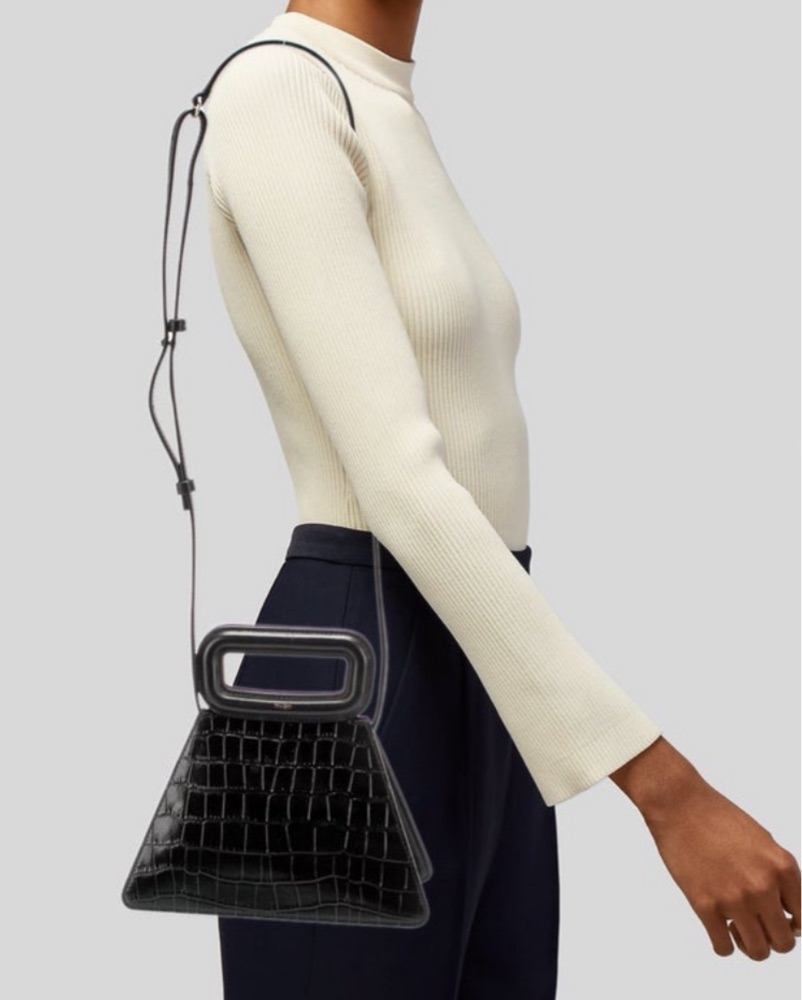MAJE BLACK CROC EMBOSSED HANDLE BAG by Maje - Pickle