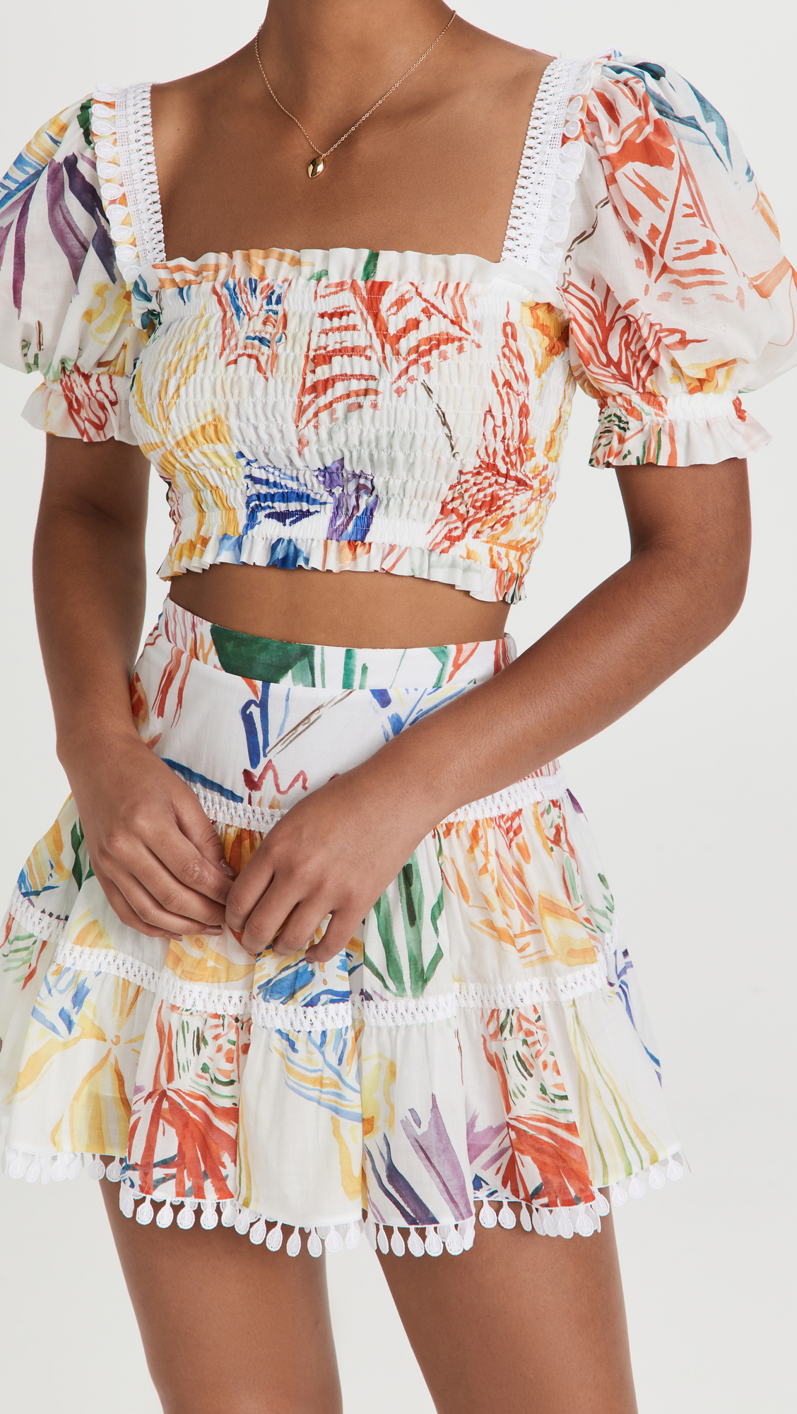 Breezy white print adds effortless summer style. Perfect for beach days, brunch, or vacation vibes. Pairs beautifully with high-waisted denim or linen pants.