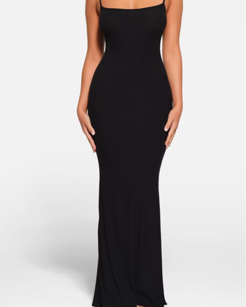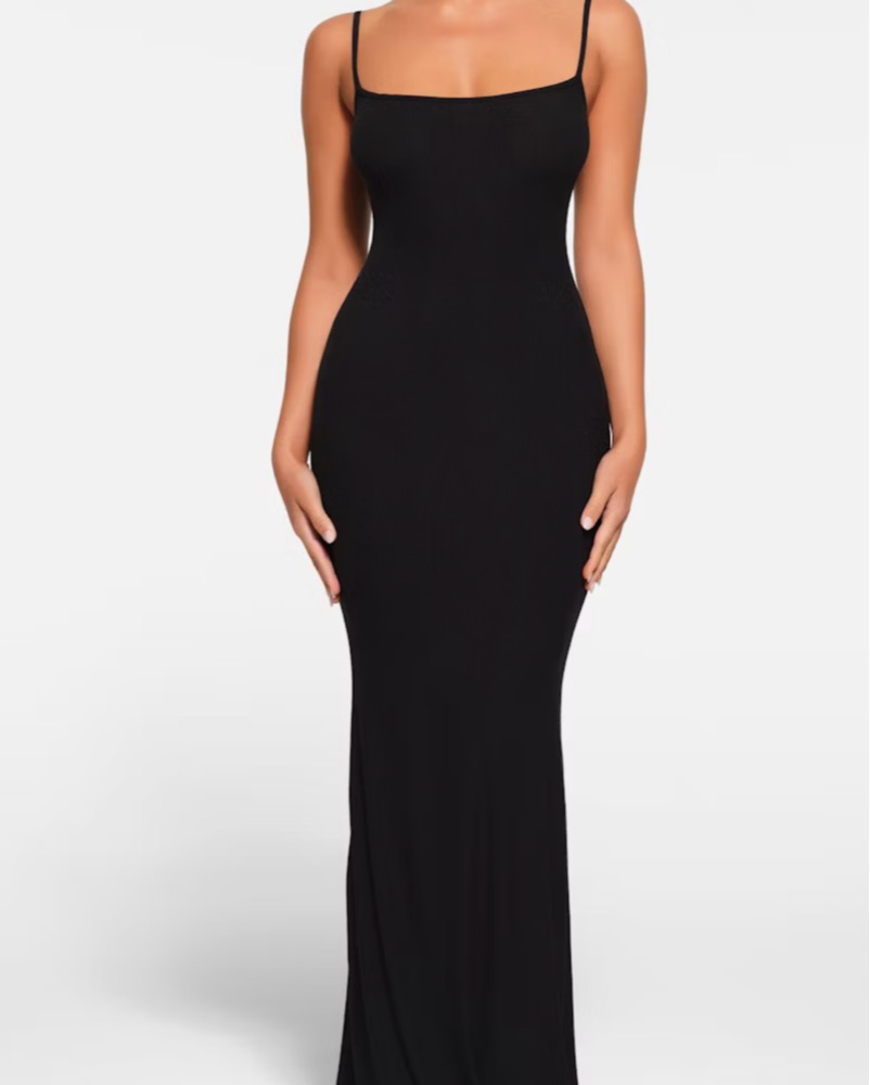 This sleek and sophisticated black maxi dress is perfect for any occasion. You can dress it up or down! The figure-hugging silhouette and spaghetti straps create a stunning, yet elegant look.