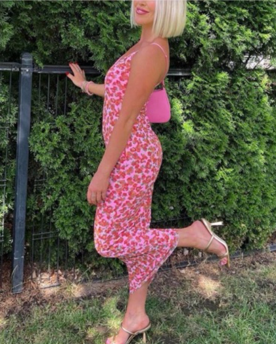 Perfectly printed in a forever femme, floral print, this stand-out midi dress is featured in a staple fitted silhouette with V-neckline and exaggerated floral detail at front for a fun, retro-inspired touch.