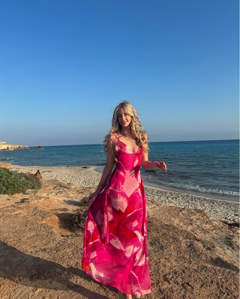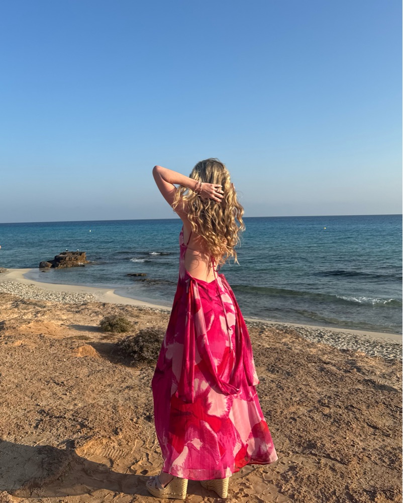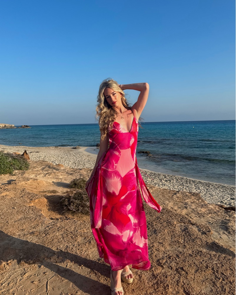 Gorgeous pink dress, adjustable spaghetti straps, light material.