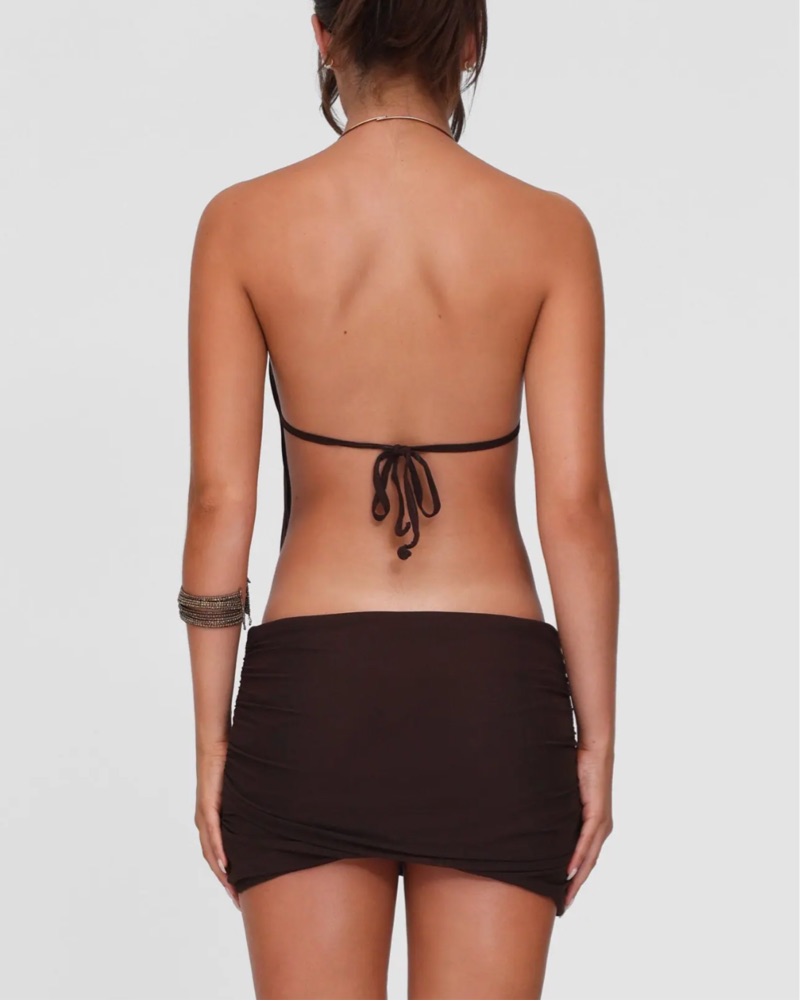 Sultry Halter Mini Dress With Gold by Tiger Mist - Pickle