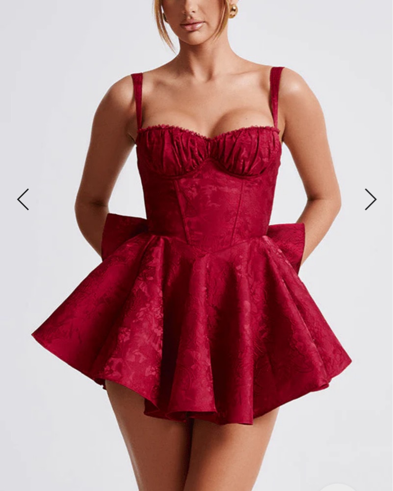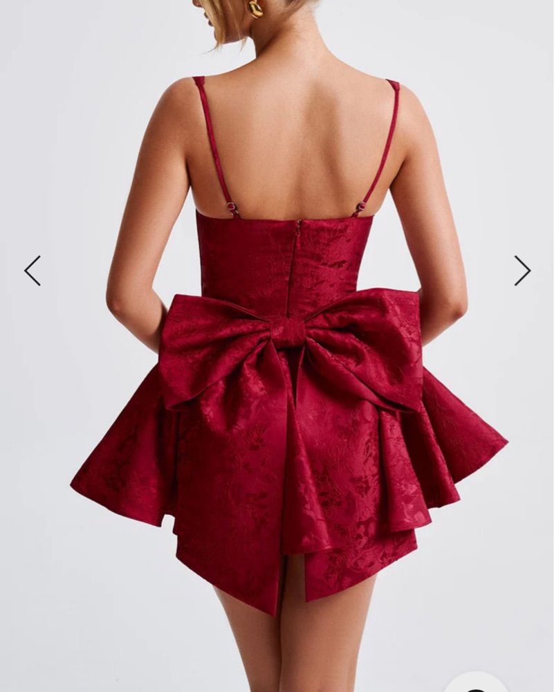 Stunning red mini dress. Has built in shorts and corset. The bow on the back is removable. It’s very tight and would fit a 0-2.