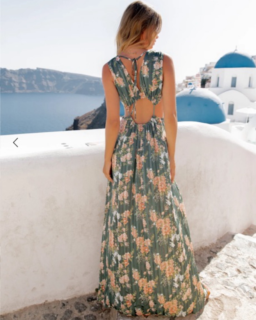 Maxi dress features a beautiful floral print and cut-out at the front and back - sage green WORN ONCE