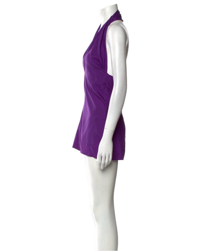 Stunning YSL purple mini halter dress. Perfect for a night out or special occasion. Size is FR40 but fits a US Small or XS, and best for a shorter person (I’m 5’4” - see photos). 100% silk, Bust: 27.5", Waist: 30.5", Hip: 39", Length: 31.25"
