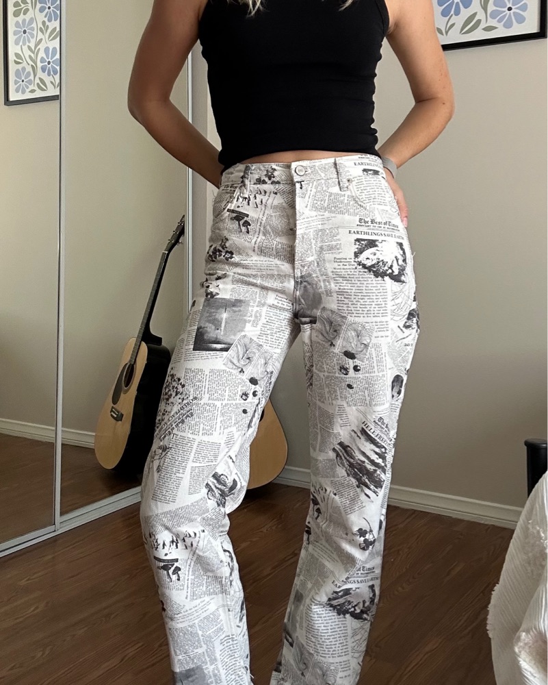 Climate Newsprint High Rise Straight Long Jeans. Tagged a 28 but fit like a 26 (I wear 26 for reference).