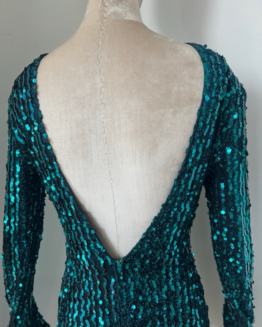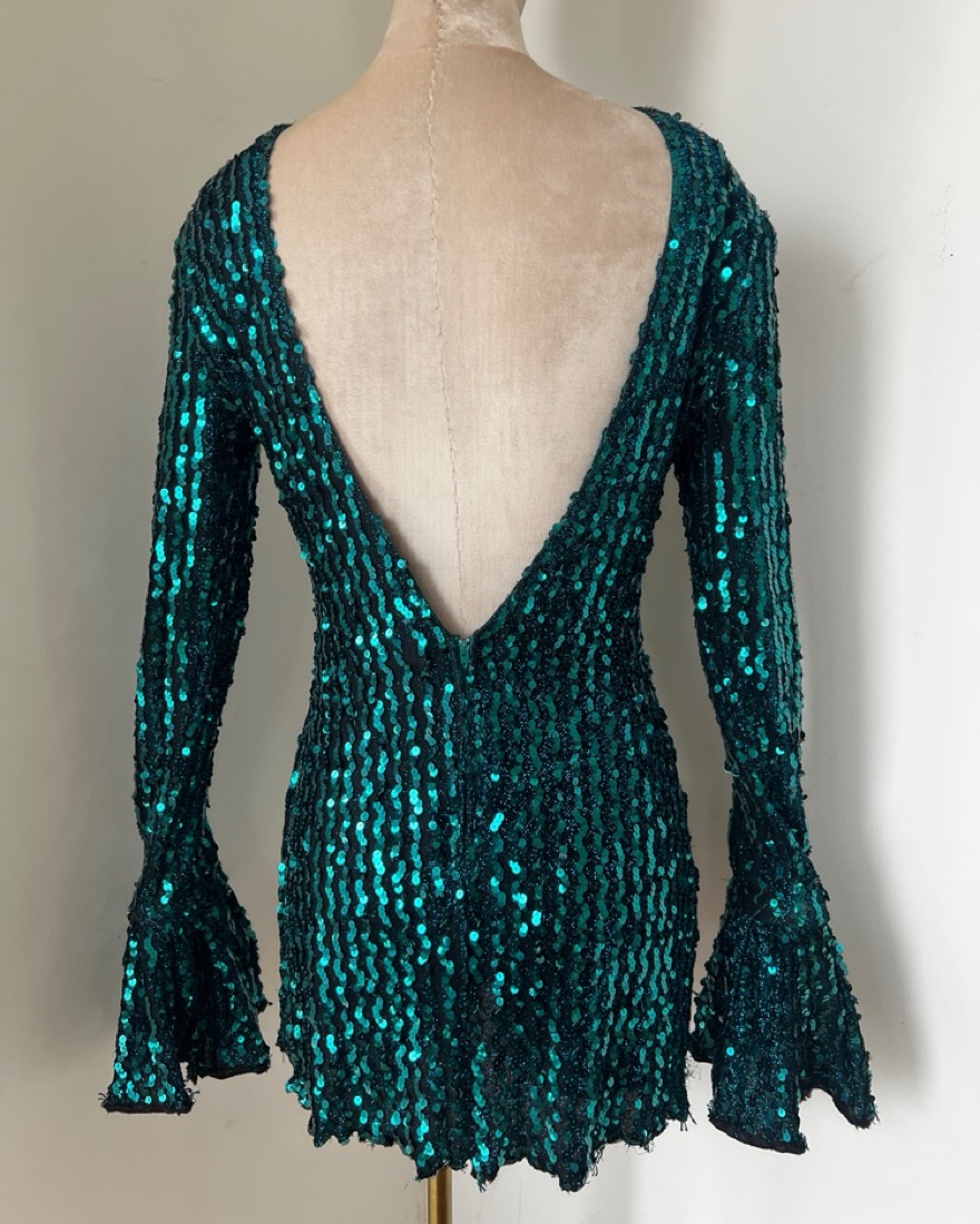This stunning emerald green sequin dress is perfect for a glamorous evening event. The figure-flattering silhouette and bold color make it a showstopping choice.