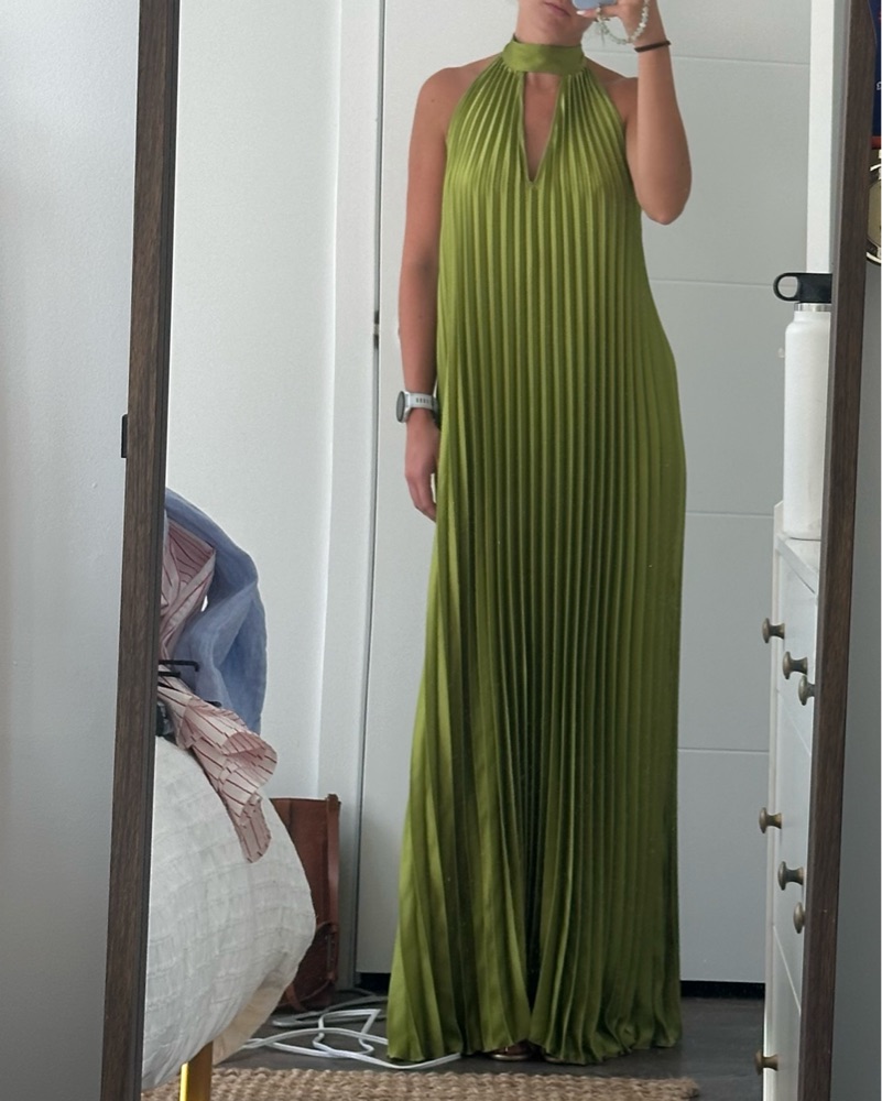 Green Halter Neck Maxi Dress by Boutique In Italy - Pickle