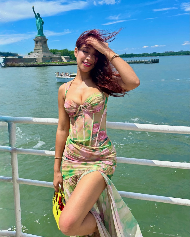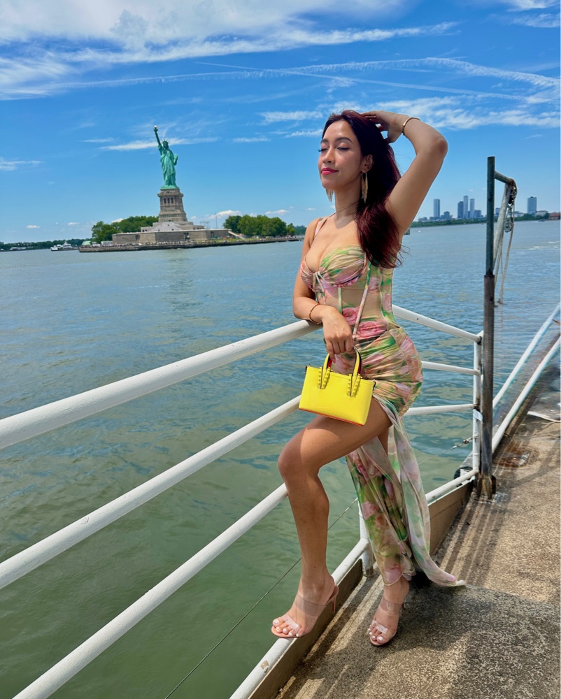 Ruched Asymmetric Corset Gown in Floral Multi Print. This stunning maxi dress is perfect for a day exploring the city or a chic evening event. The vibrant floral print and flowing silhouette create a stylish and feminine look.