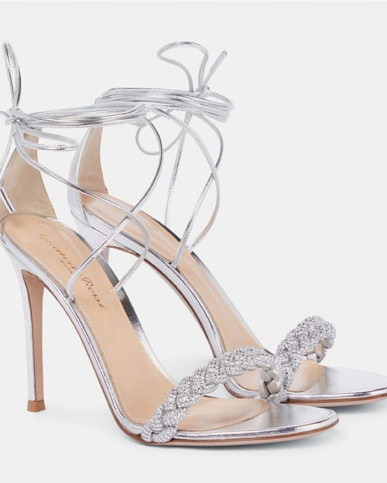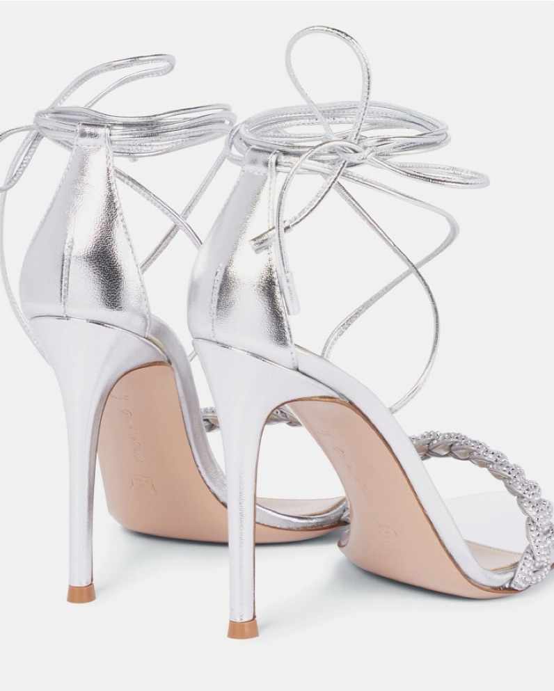 Gianvito Rossi Crystal Silver Leomi Heel by Gianvito Rossi - Pickle