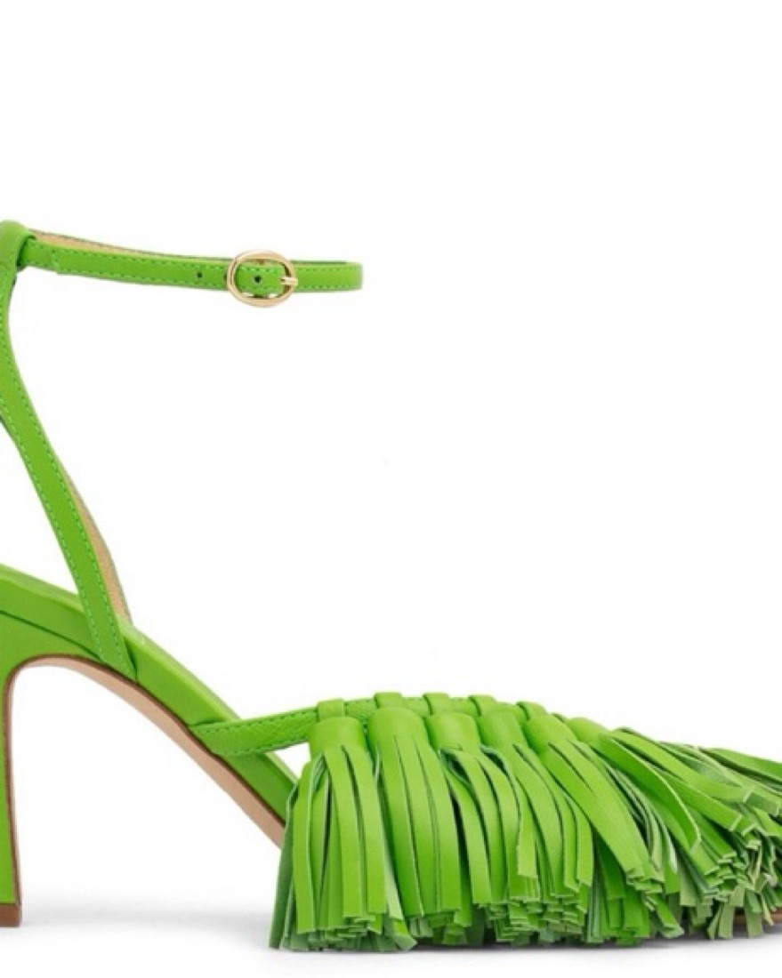 Awake Mode Fringe Heels by AWAKE MODE - Pickle