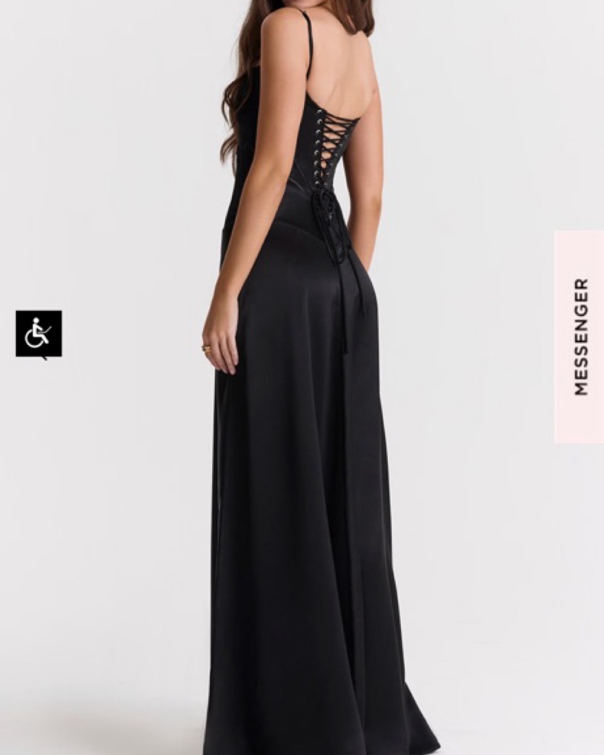 Perfect for wedding guests. Black drop waist dress with an adjustable lace up back. Fits like a small/medium. this item is live on their website so please check your measurements.