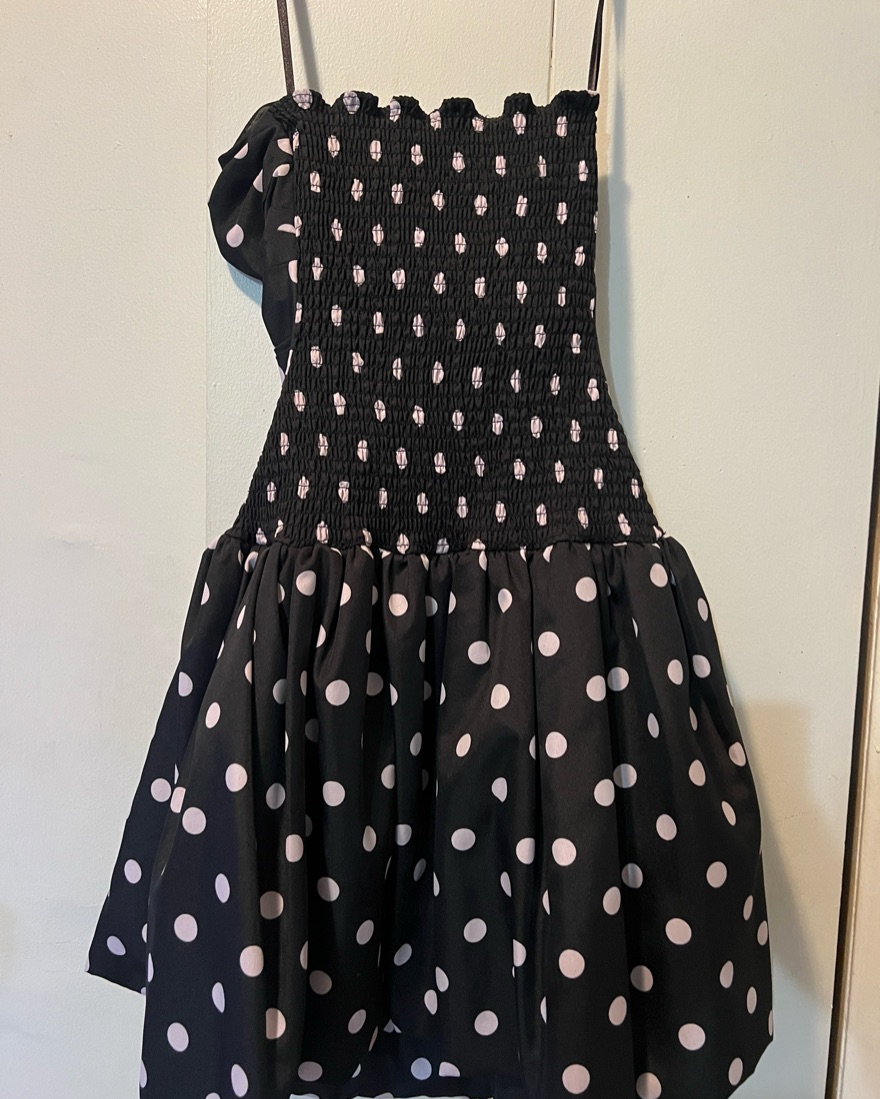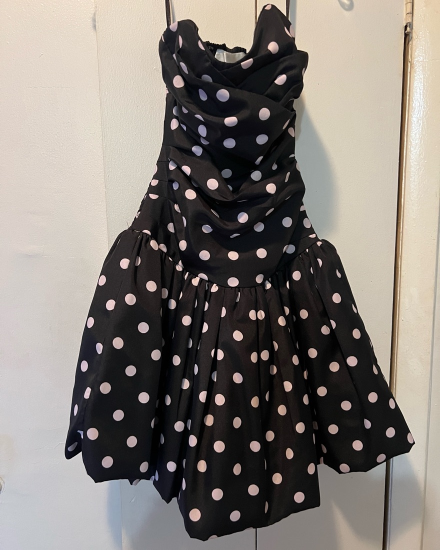 This is a very fun dress that can be dressed up or down. Strapless polka dot dress by Luella Bartley for Target.