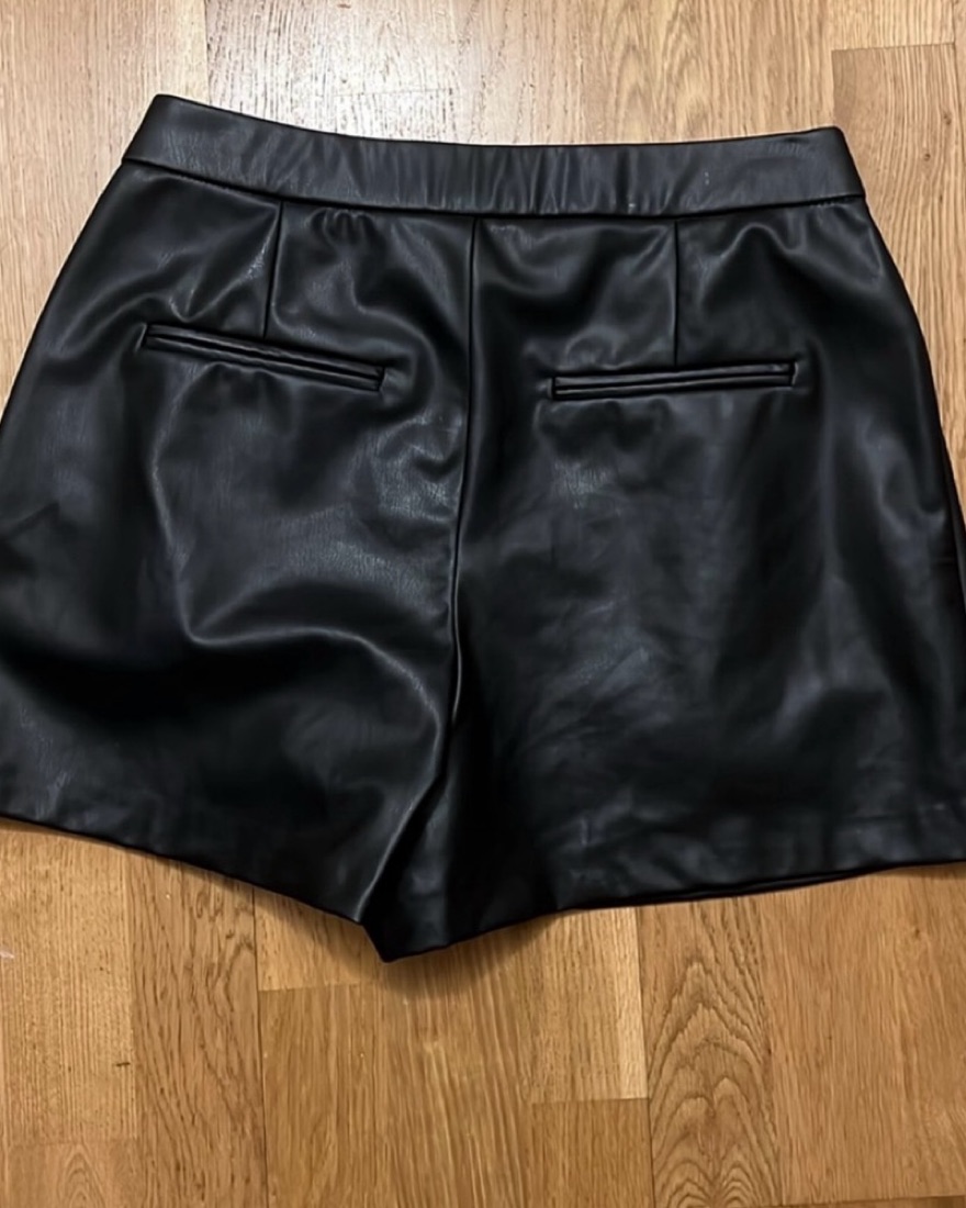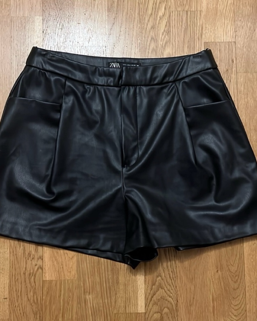 Paperbag look with small front pockets, leather looks genuinely nice.