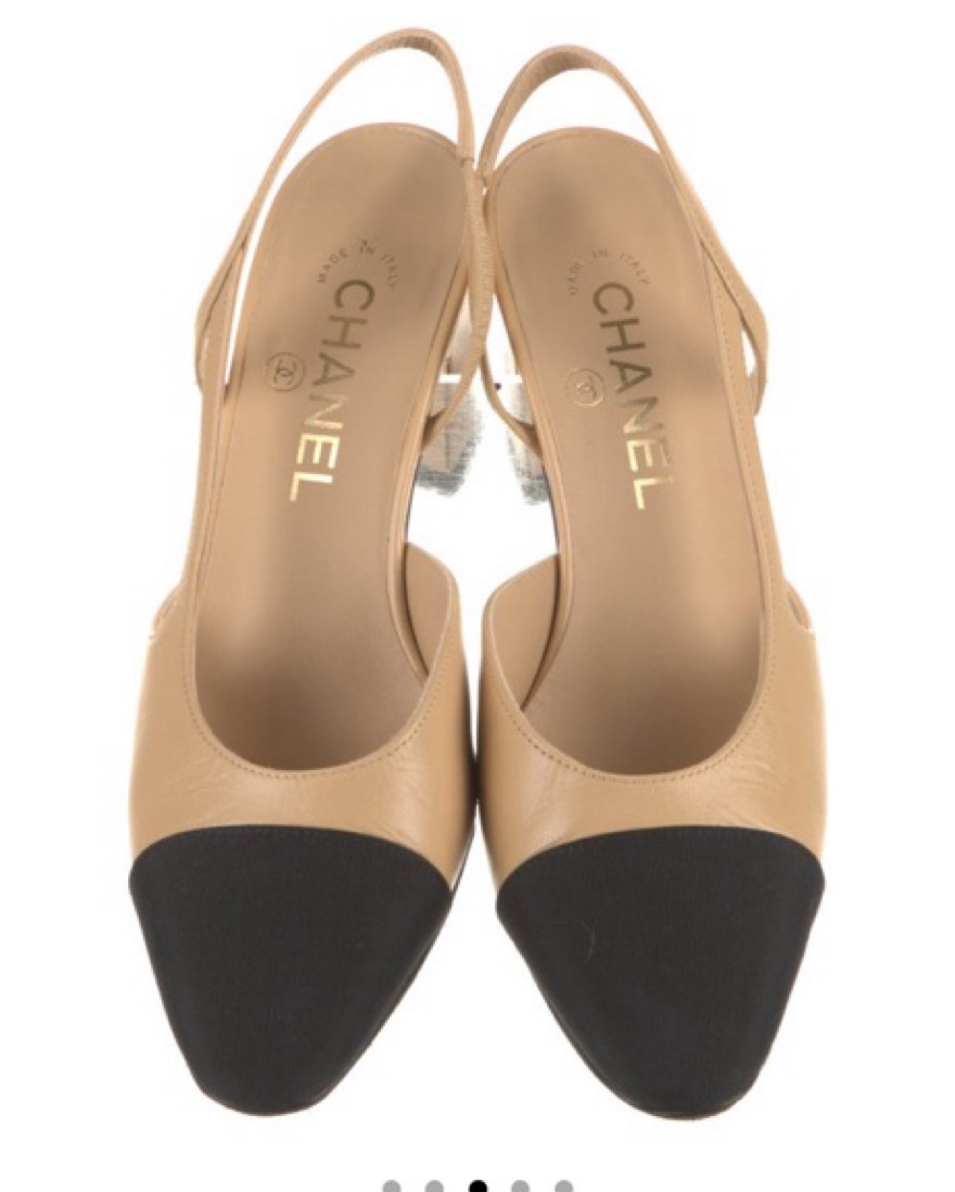 Classy slingback cap toe heels from chanel. Size 7.5C (wider fit)