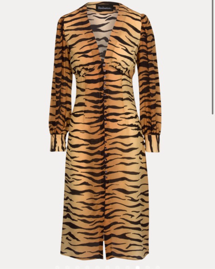 Realisation par vivienne dress in tiger print size XS. Super cool dress and looks amazing on.