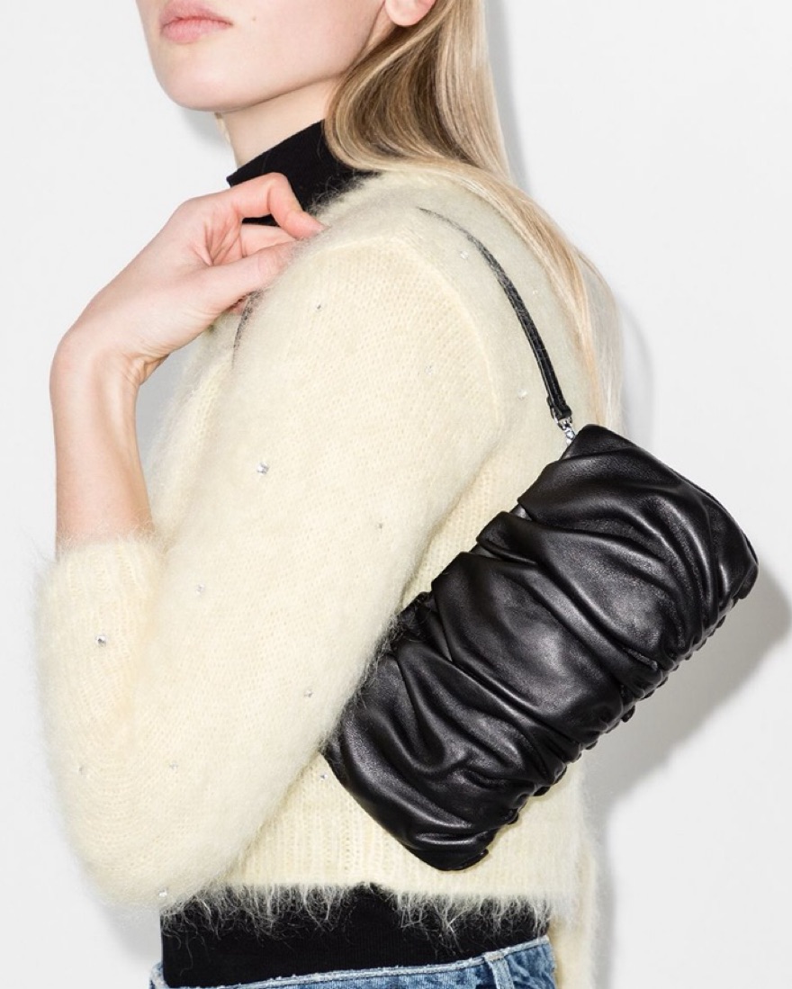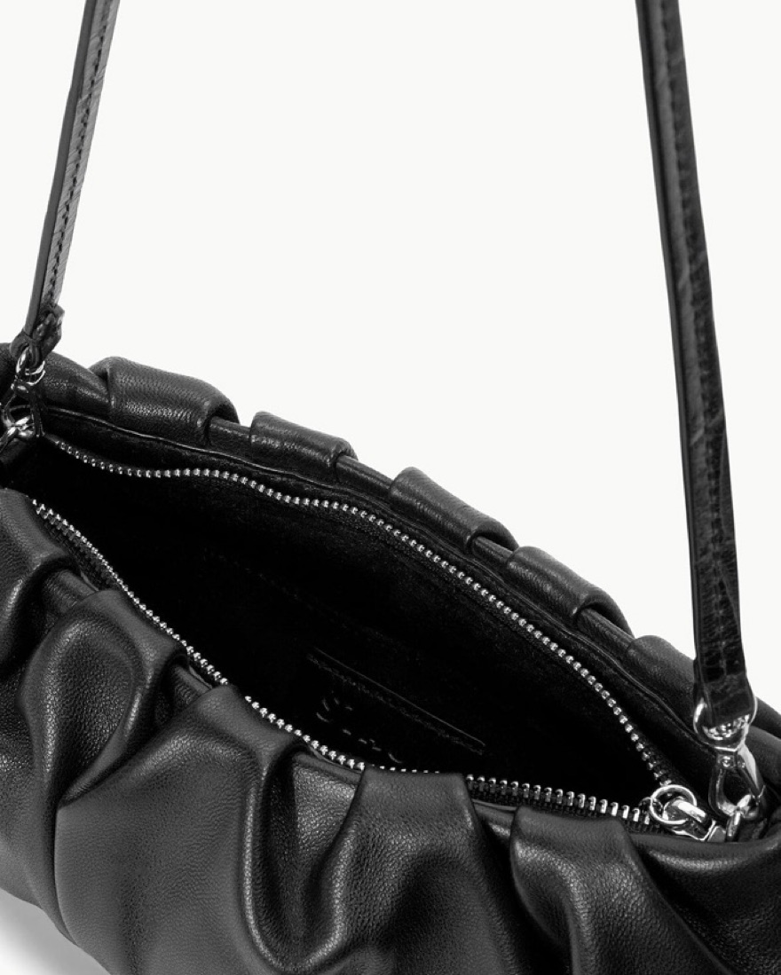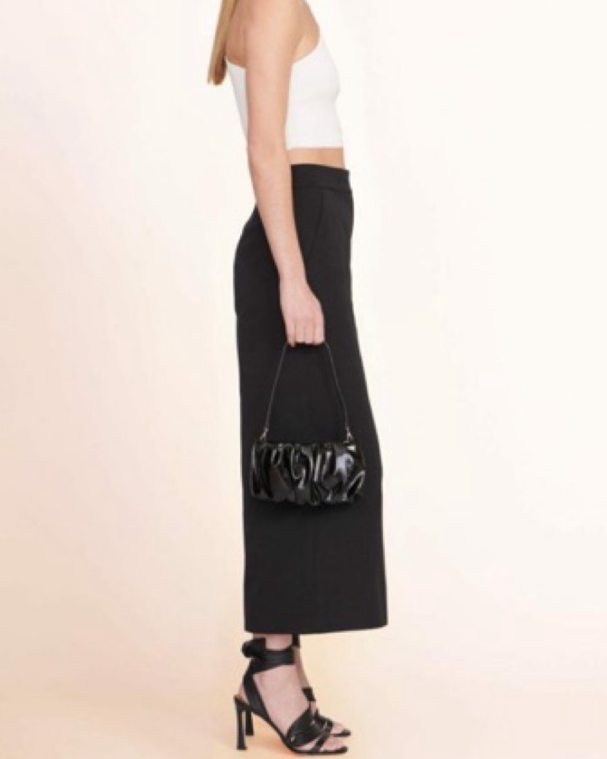 This black Staud purse is the perfect handbag to level up a look. It’s amazing to dress up or down and ideal for almost any event: date night, work/office, going out, bachelorettes, vacation, dinners and parties. It will hold a bunch inside of it, but is lightweight / easy to carry around.