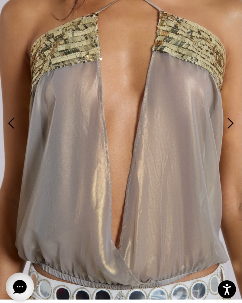 Morgana Metallic Sequin Chiffon Top UK 4 / Gold