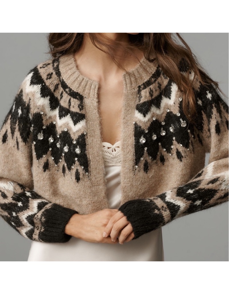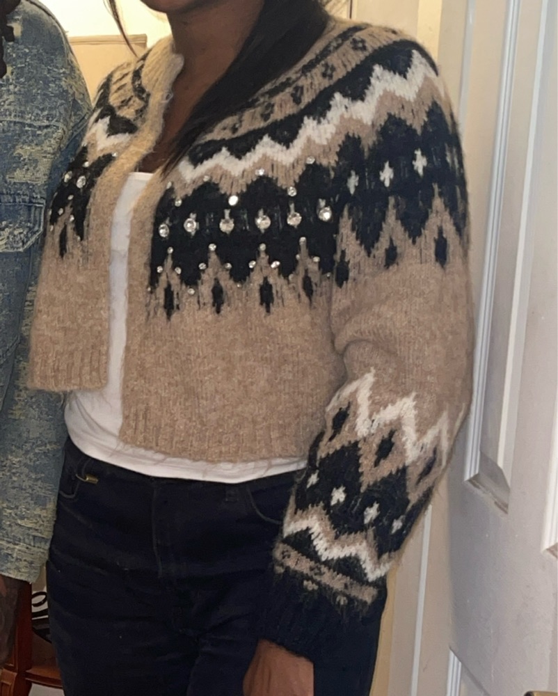 Anthropologie Embellished Fair Isle cardigan sweater one size fits most
