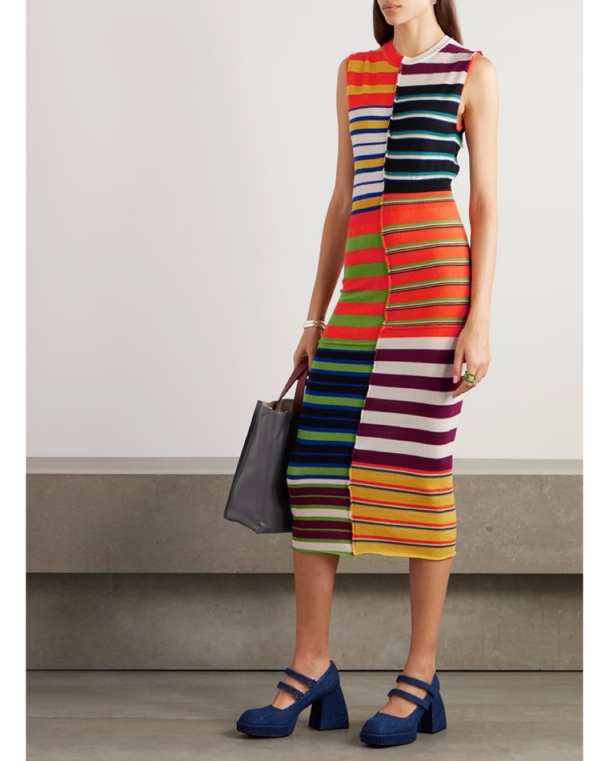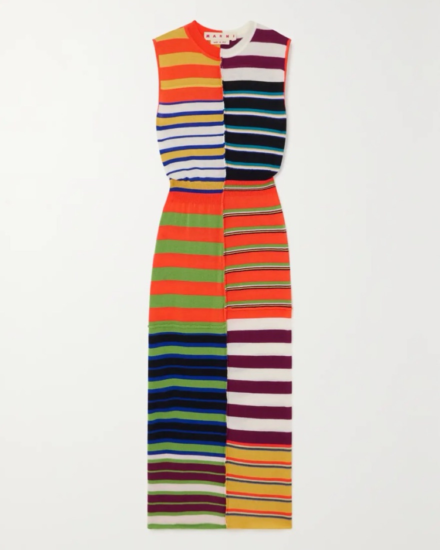 Comfortable Striped Marni midi dress perfect for the summer or the winter. Size xs but Marni runs big. I would size it at S/M. Flattering waist sinch