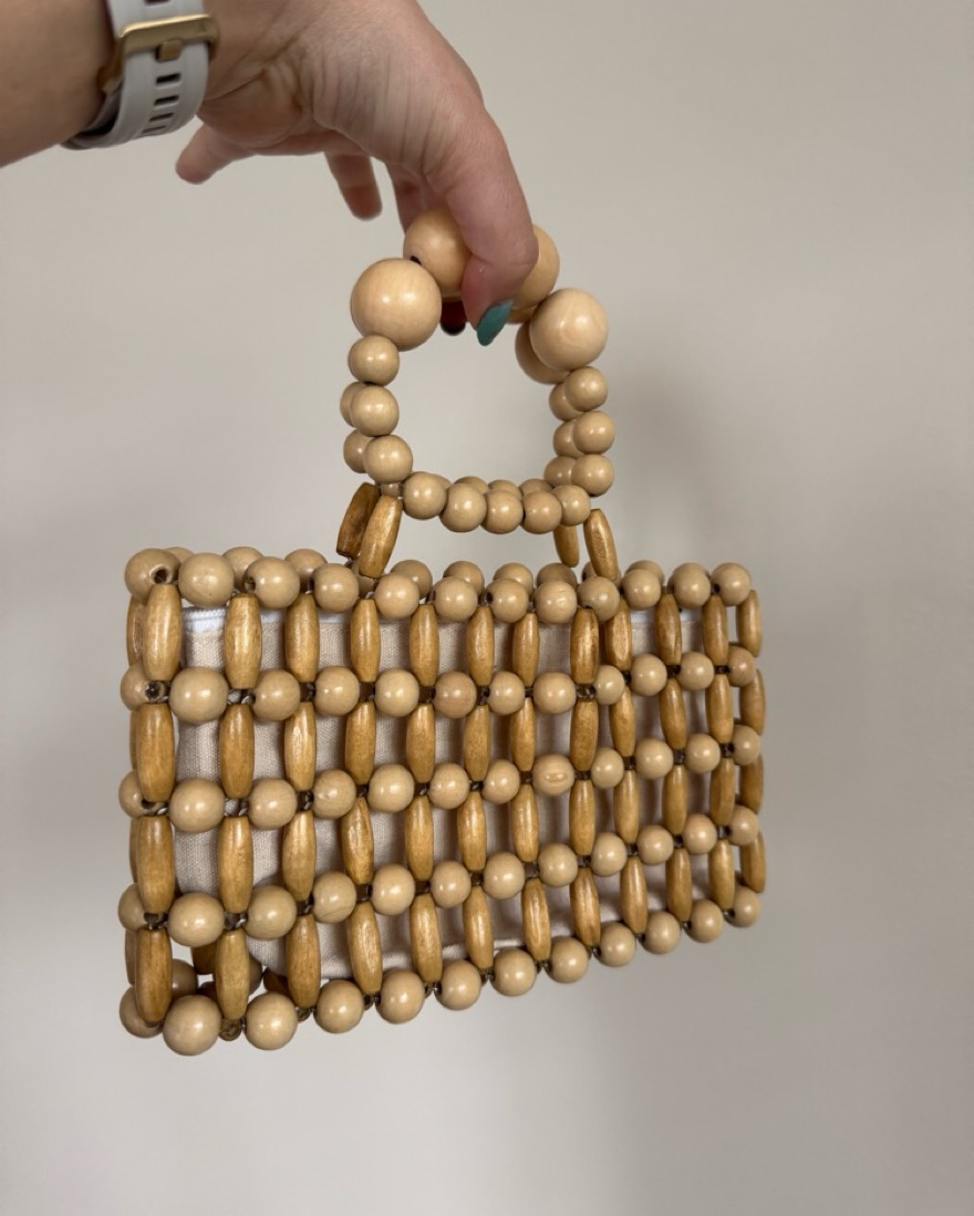 Wood beaded purse with removable insert! Perfect for a vacation or beachy outfit!