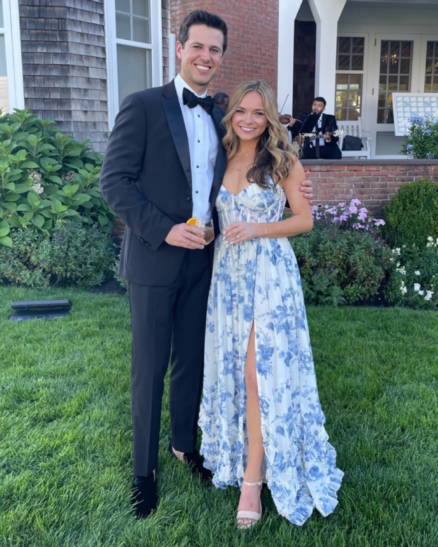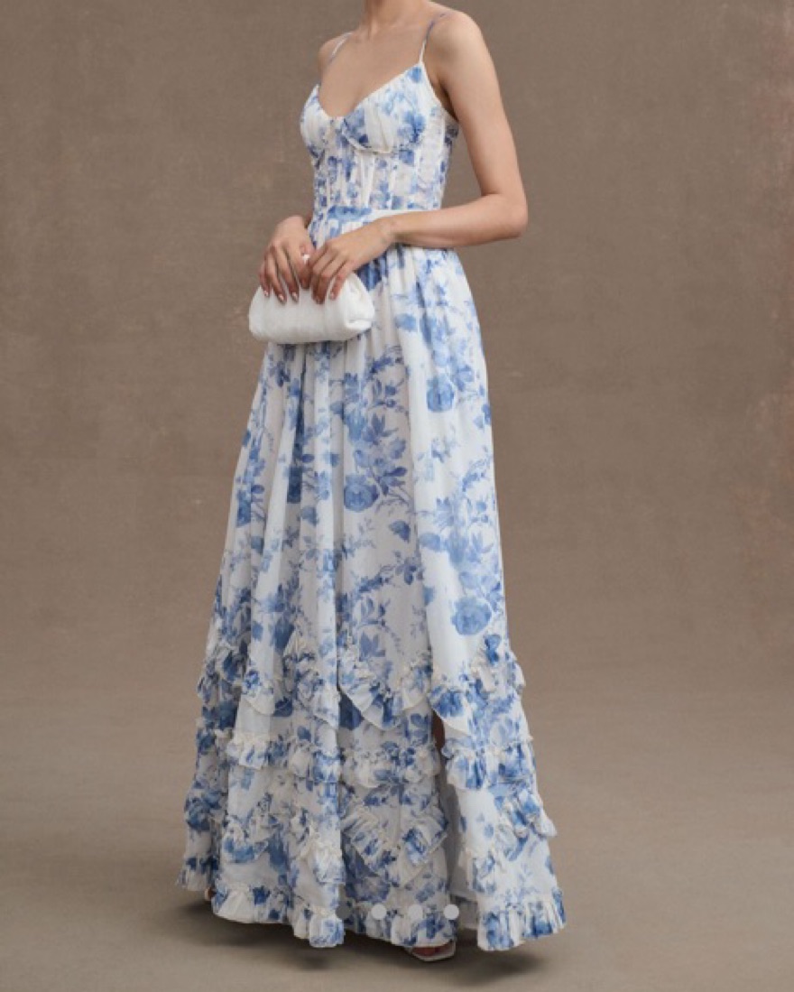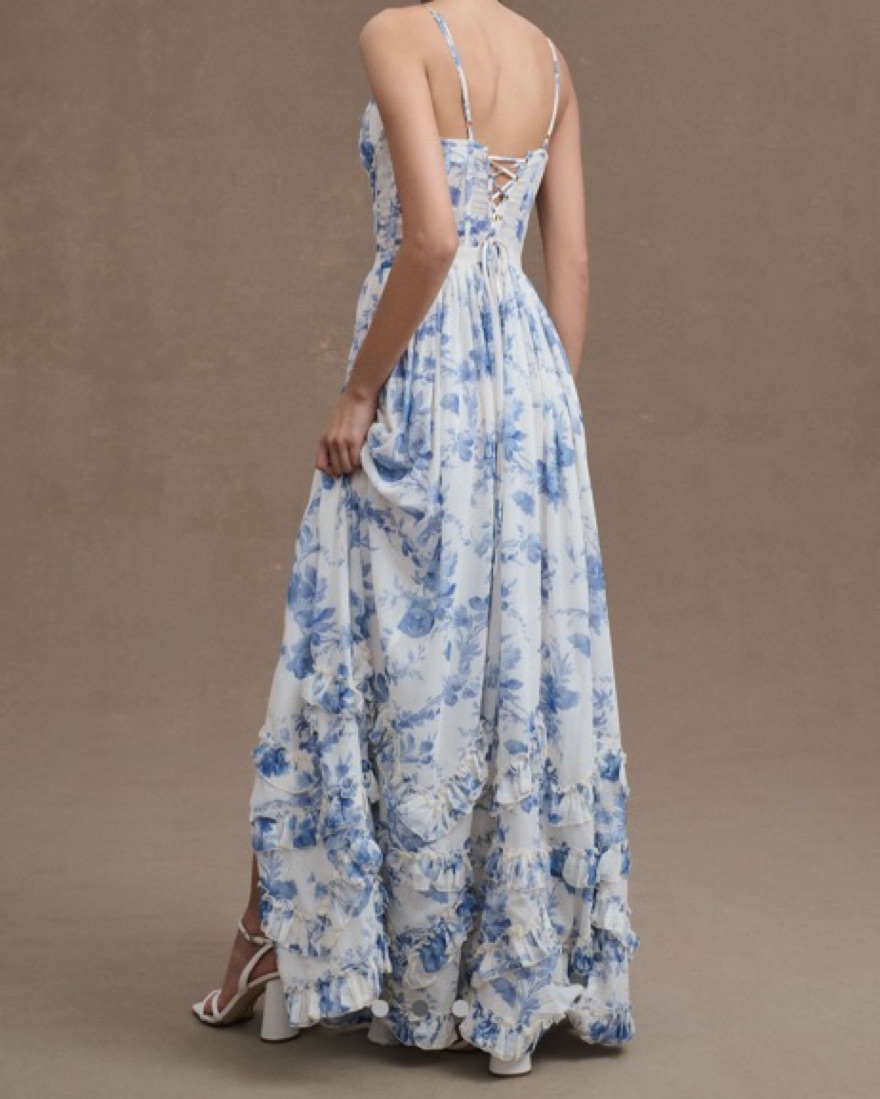 V Chapman Front Slit Maxi Dress with lace up back in Provencal Blue Floral. Worn once and in amazing condition. Hemmed at bottom for length!