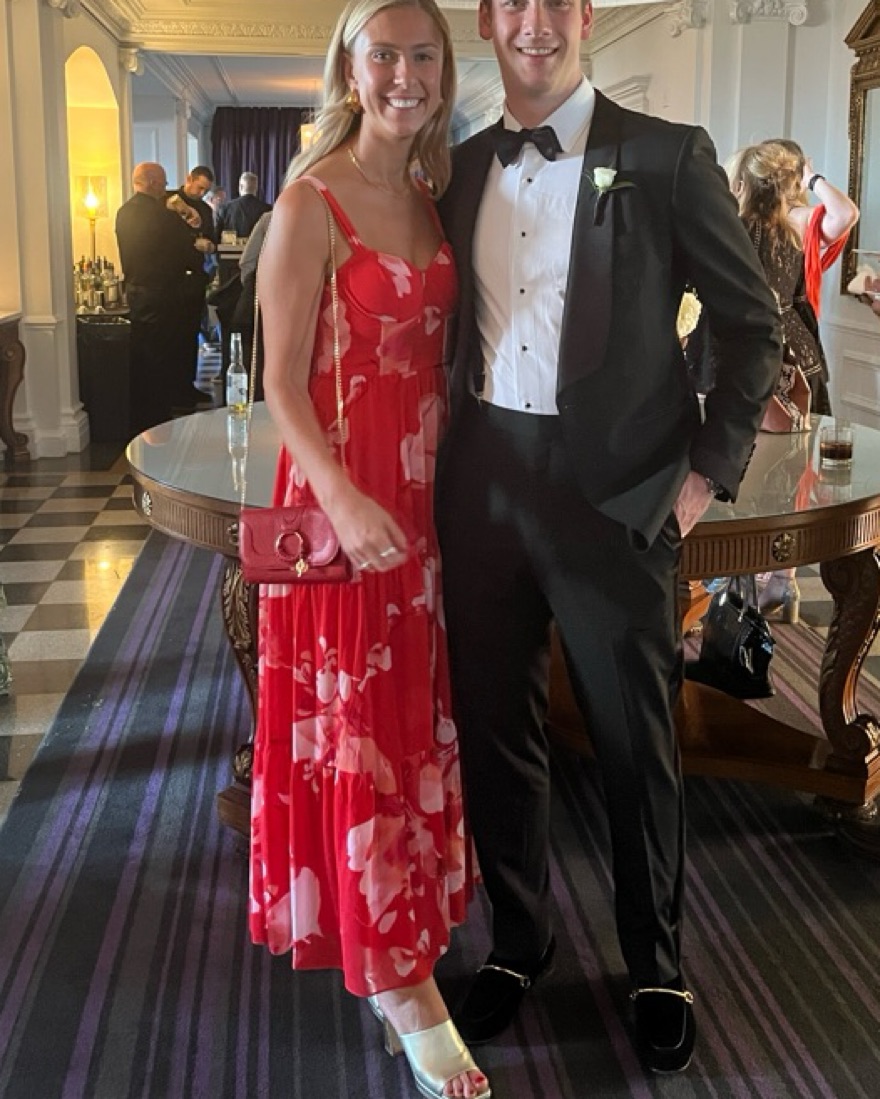 Red floral formal dress
