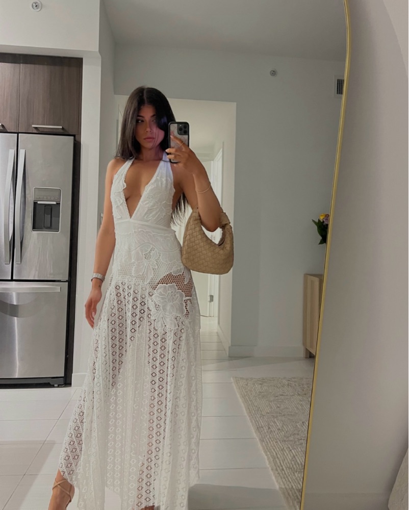 In Ivory - Literally the most BREATHTAKING BEAUTIFUL dress. I’ve worn it twice & both times I got a million compliments. Show stopping. Please no self tanner & be super careful with it!