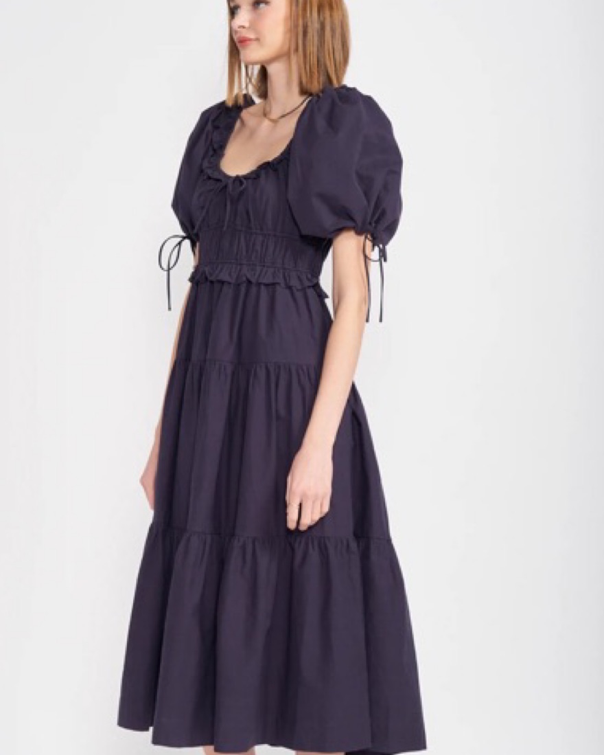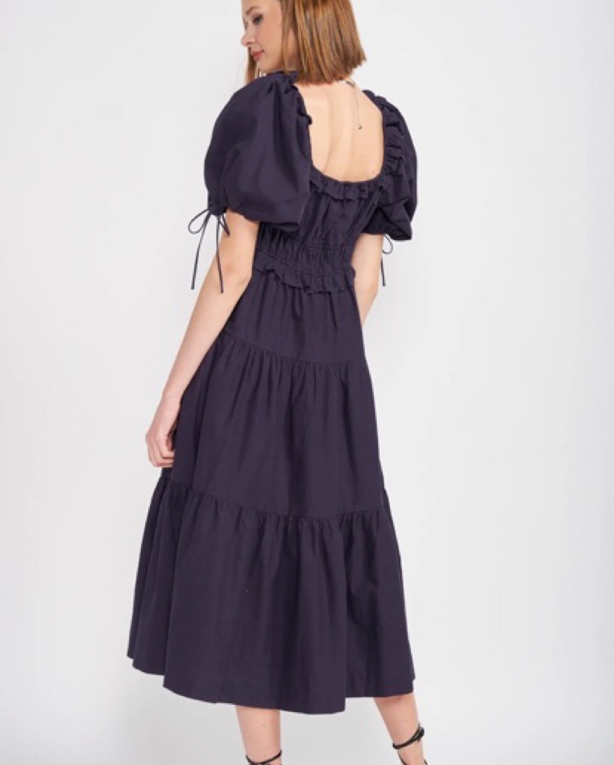 Navy En Saison Brielle Midi Dress 100% Cotton Poplin Tiered Midi Dress
