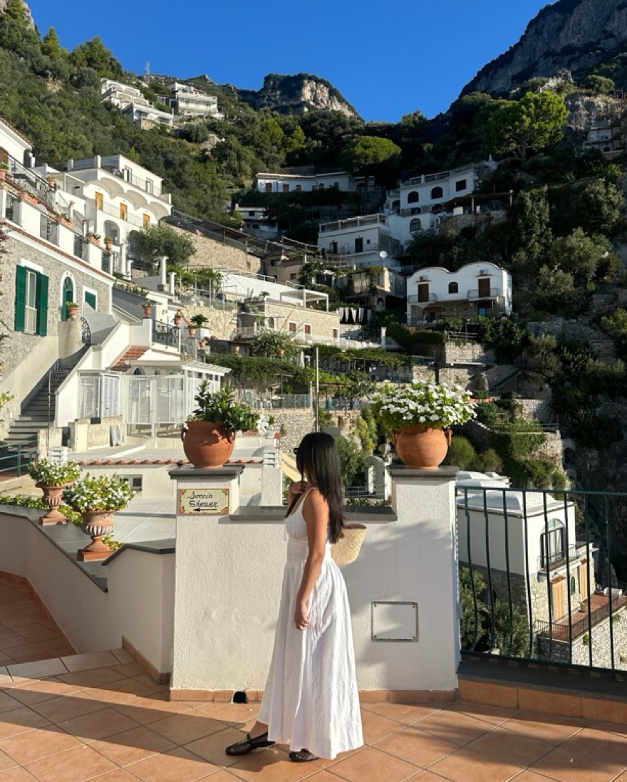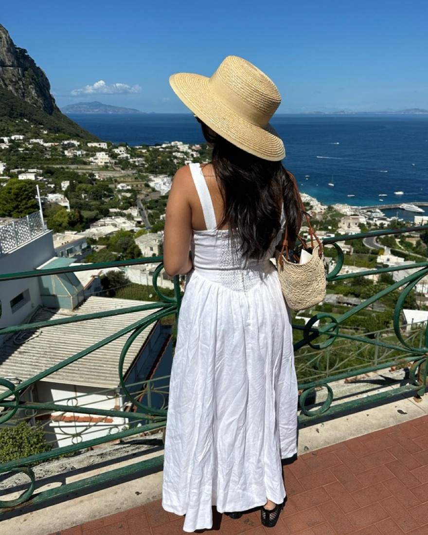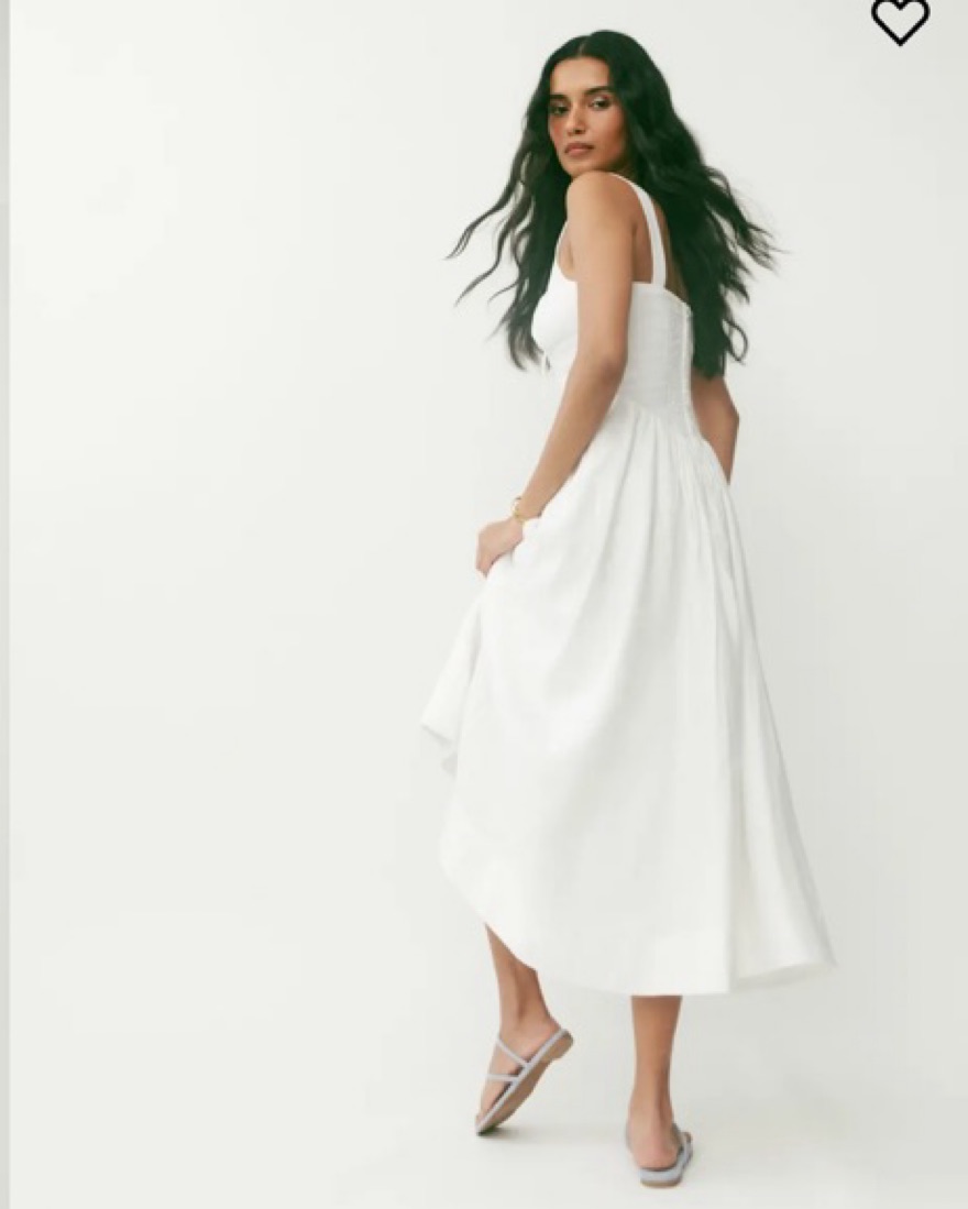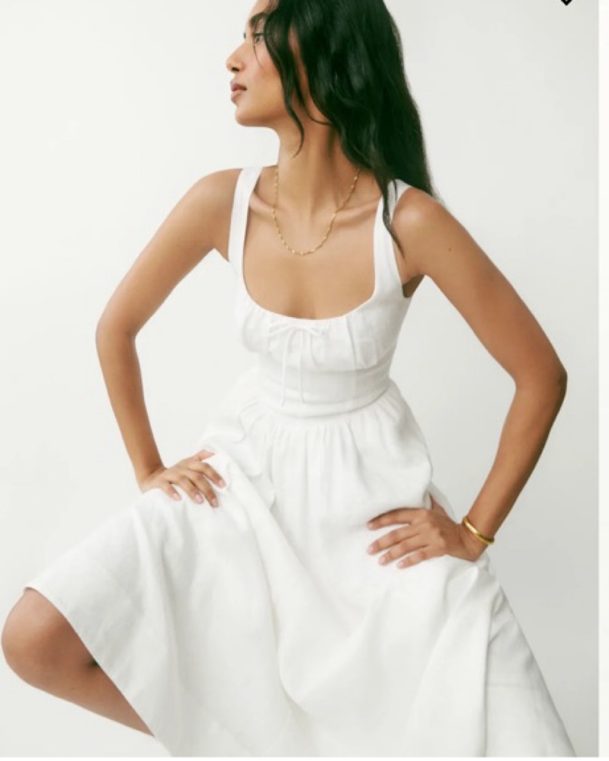 Linen dress with a fitted bodice. Size 2. Please treat her with care since she's all white! No self tanner please.