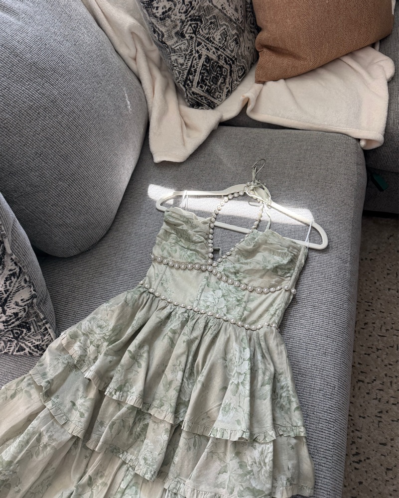 Gorgeous Sage dress perfect for bridal party. Only worn once could be worn as a wedding guest as well. Very good condition, please dry clean after use.