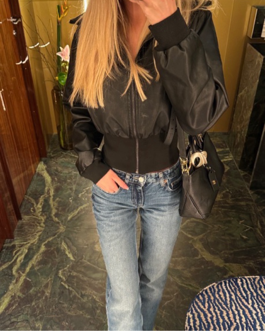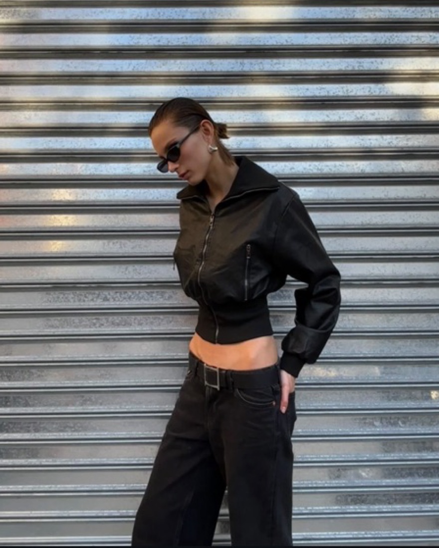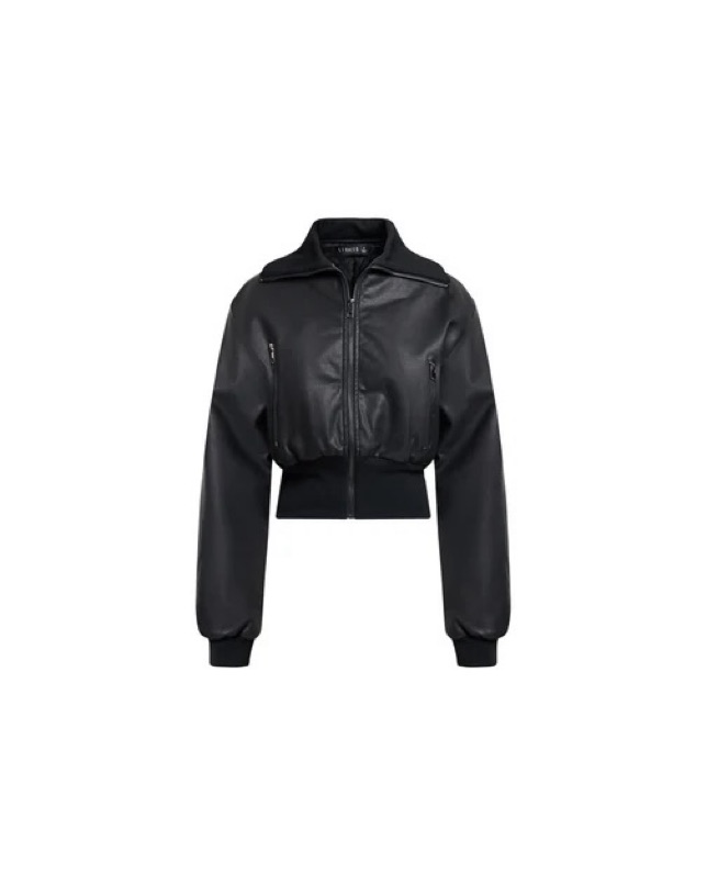 •not sold anymore, please take care of this! Lioness cropped bomber leather look elasticated hem bomber jacket in black • Layer up