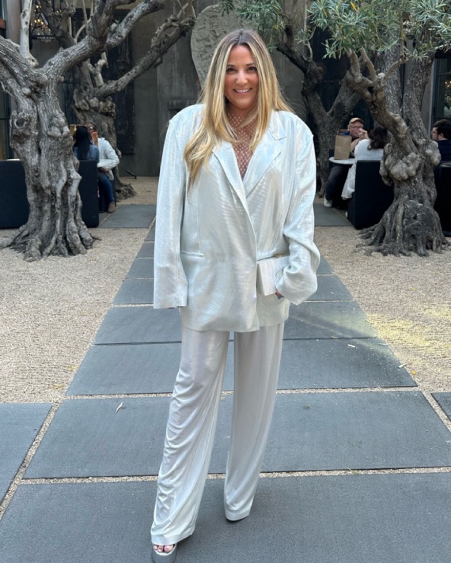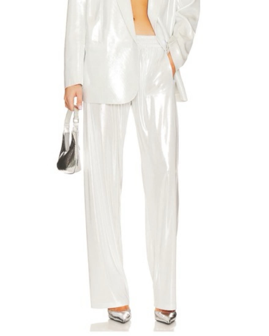 These are like a fancy sweatpant. SO comfy. Stretchy waistband. Size medium. Also have the matching blazer for rent.