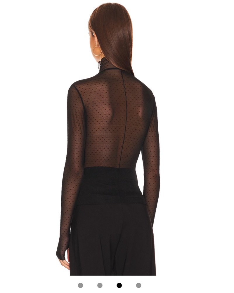 Free people on the dot layering black long sleeve with polka dot detail. .This stylish sheer top is perfect for a night out or special event. The illusion mesh panels add a touch of elegance and sophistication to this chic piece.