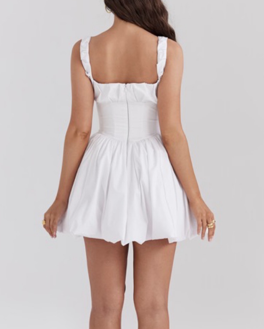 White corseted milkmaid style dress from house of cb!
