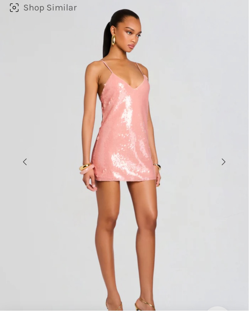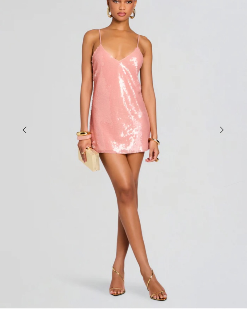 This sparkling sequin dress is perfect for a fun night out. The sleek cami silhouette and mini length make it a versatile piece that can be dressed up or down.