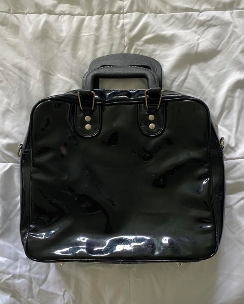 Fiorucci The Angels black patent leather bag purse w hard top handles, comes w crossbody/shoulder strap! medium sized! stunning for dinners date girls night going out party glam office! total nyc itgirl nyfw cool girl fall trends designer looks