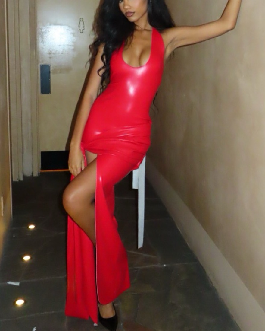 Red faux leather dress