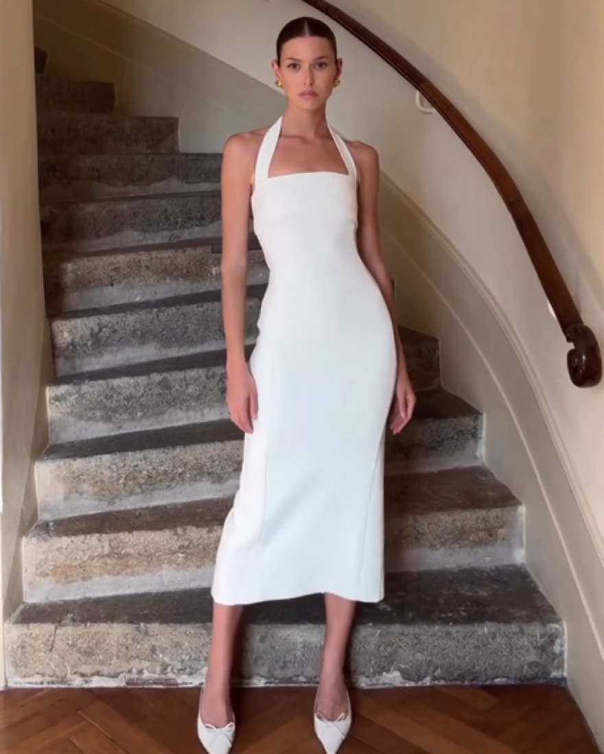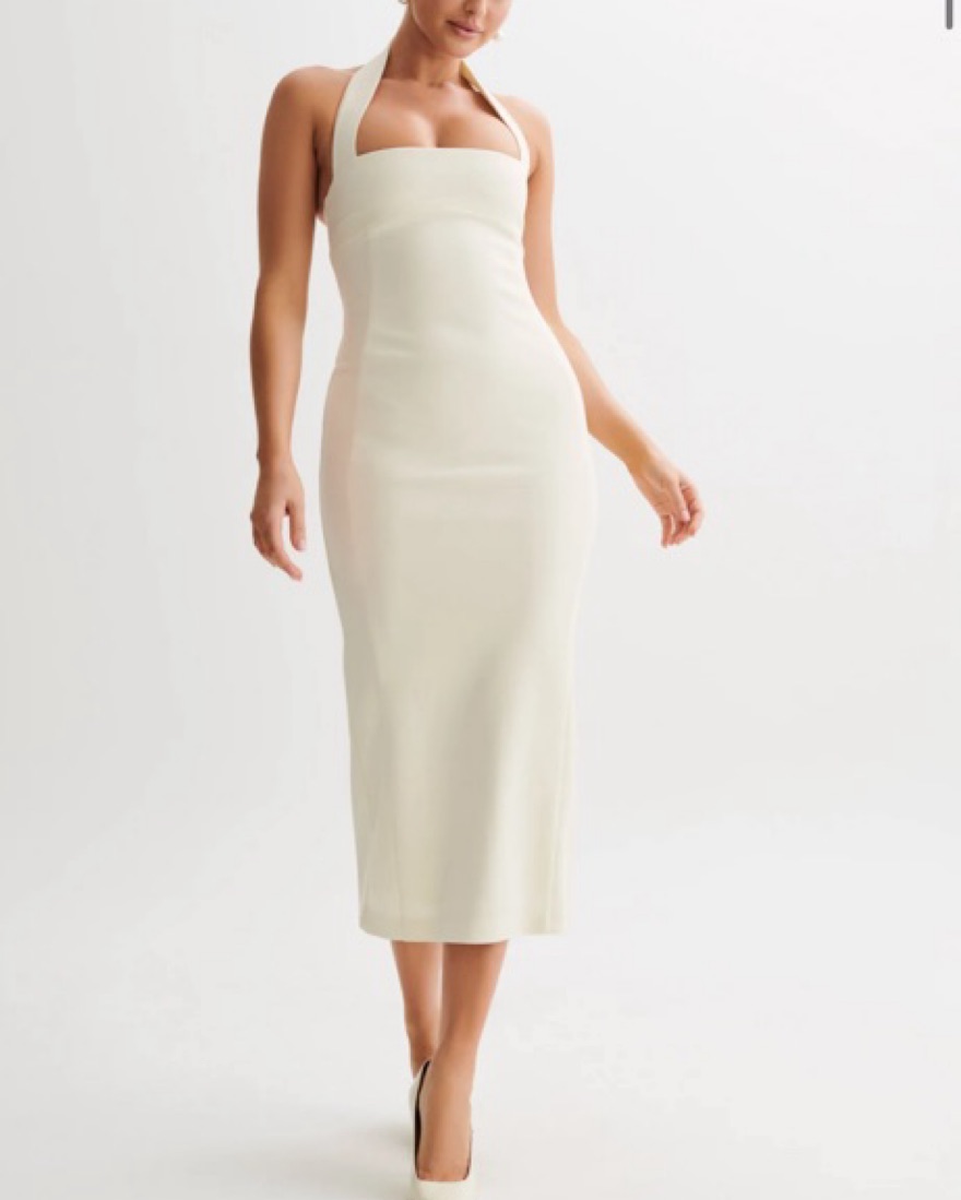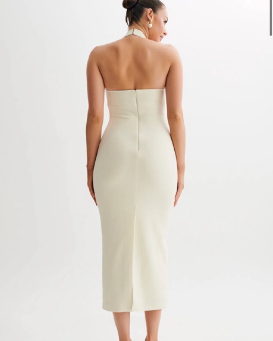 Meshki Amelita Suiting Halter Midi Dress by Meshki - Pickle