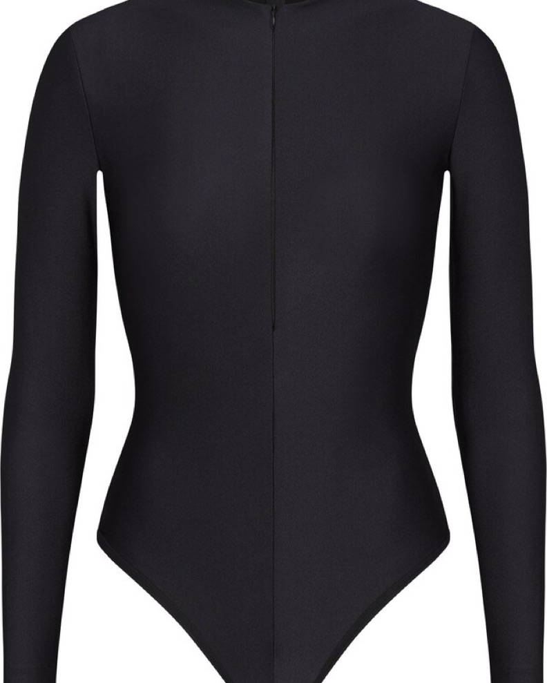 Skims Disco Long Sleeve Bodysuit Onyx