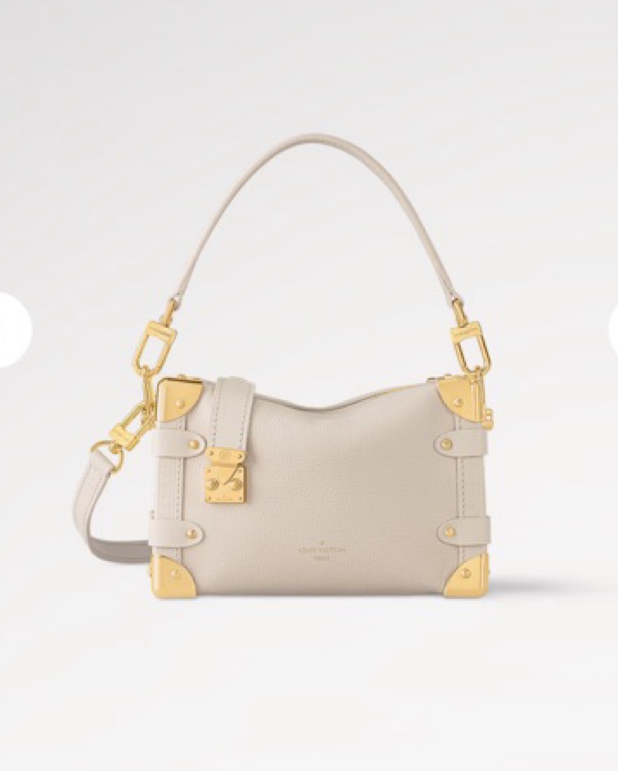 Crafted from grained calfskin leather with a gold-color S-lock and corners, the Side Trunk PM takes its inspiration from the House’s vintage trunks. A detachable leather handle and a removable and adjustable leather strap give carry options. Side Trunk fits a wallet, large smartphone, keys, lipstick
