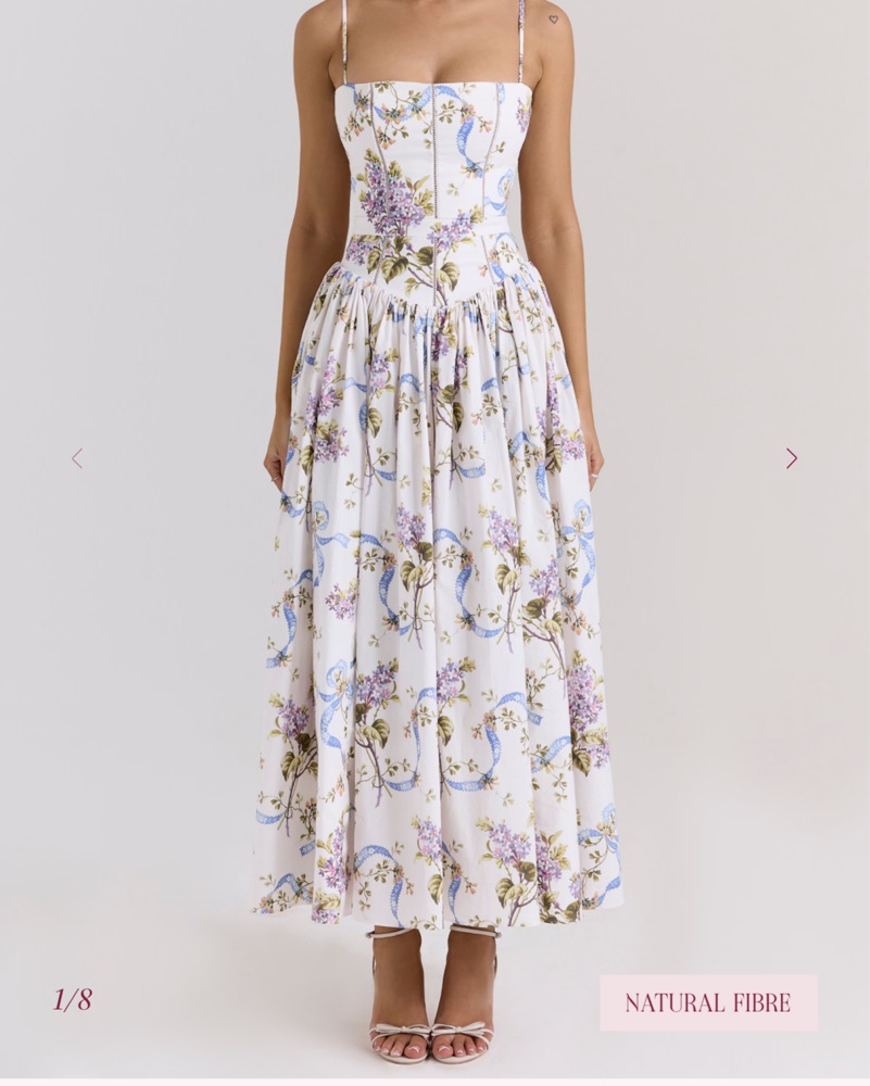 This stunning midi dress features a beautiful floral print and a flattering fit. Perfect for a spring wedding or date night. Size s, usually a 0-2, waist 25,