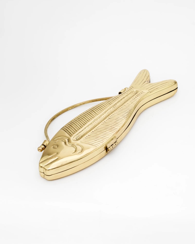 Brand New, pristine condition! Fishy. A solid brass fish-shaped bag designed for those who want to make a splash at any occasion... (pun intended.)