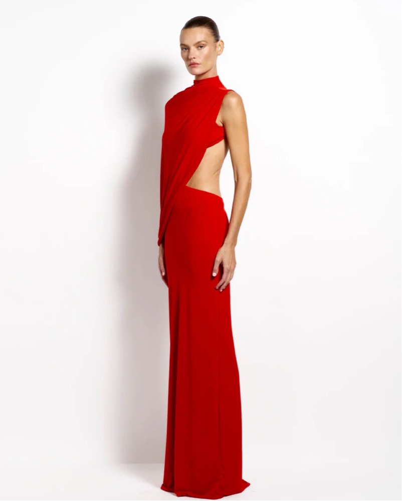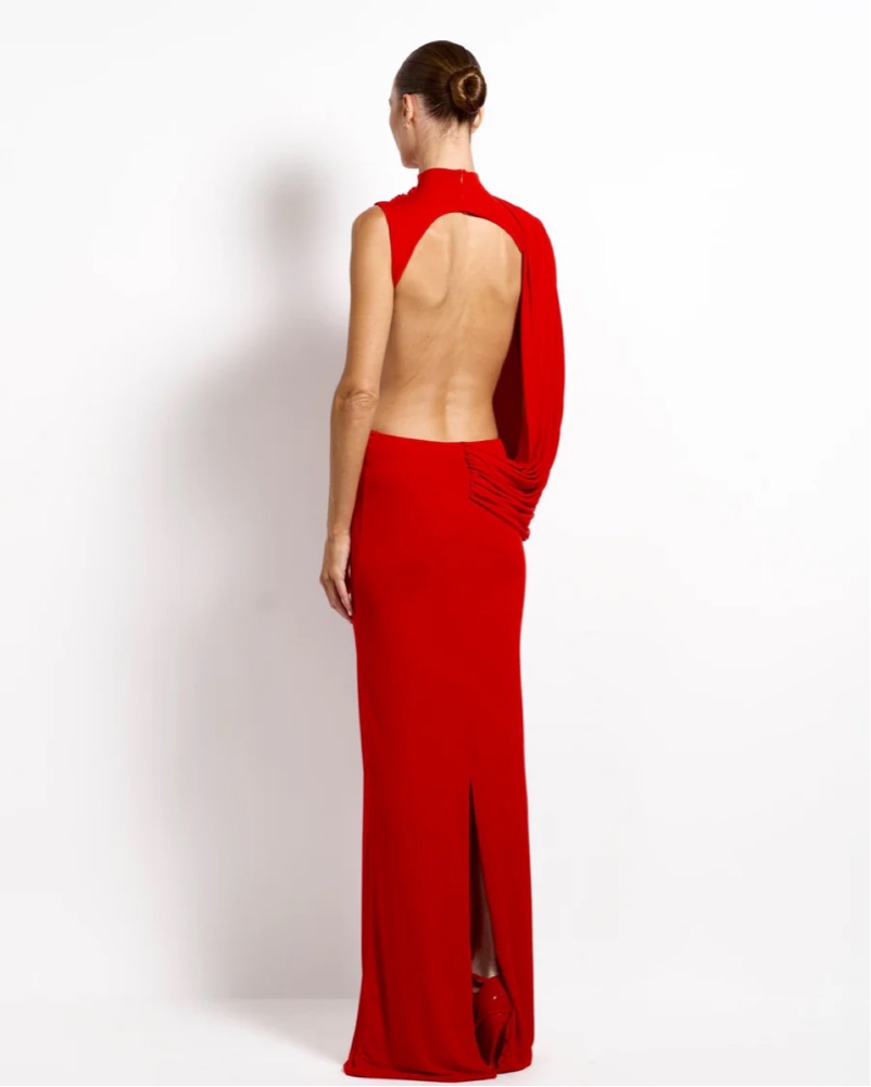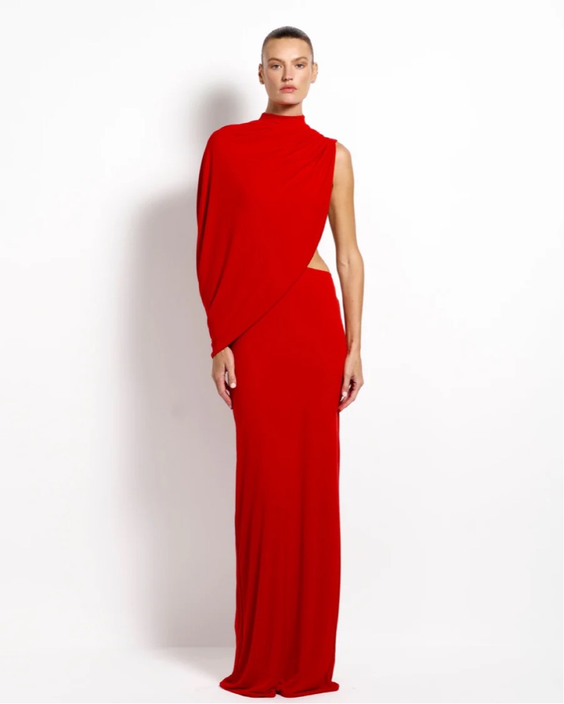 Welcoming the Aleksi Gown — a study in drape and form. Crafted to create softness through volume, it falls around the body with quiet intention, allowing movement to shape the silhouette.