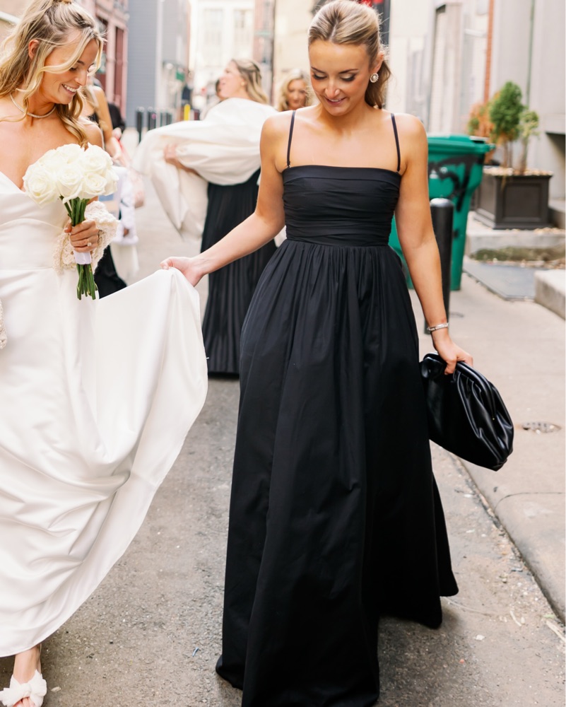 Designed to be fitted at bodice with a full skirt. Back smocking, removeable straps, straight neckline. Back zipper and pleated details