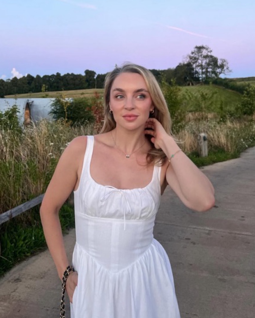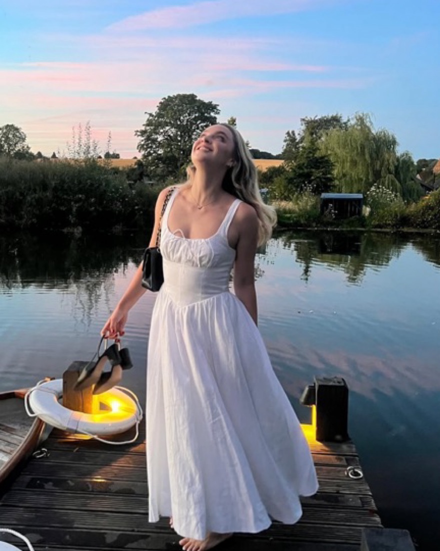 This stunning maxi dress is perfect for a romantic evening out or a special occasion. The flowing, soft fabric and delicate details create an effortlessly elegant look.
