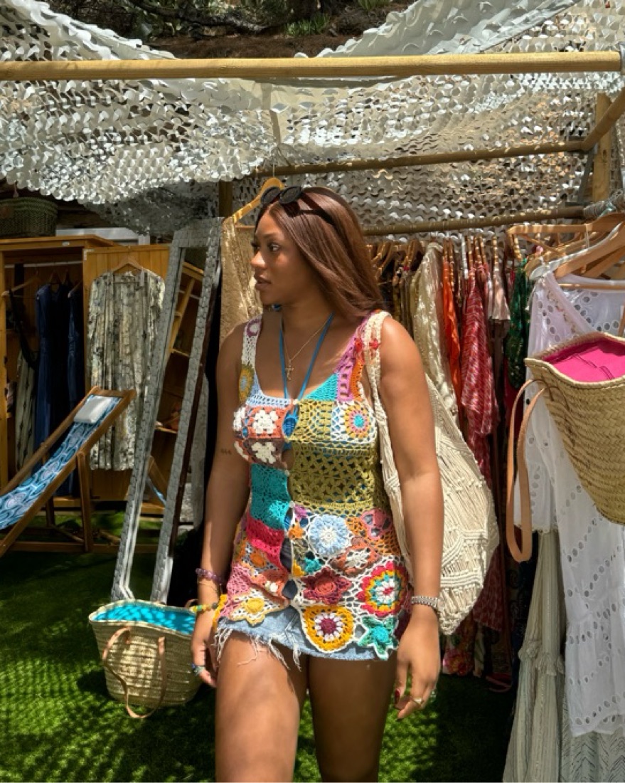 Literally obsessed with this dress! A mix of stunning colours. Can be worn as a coverup on vacation or casually for brunch/to the park.